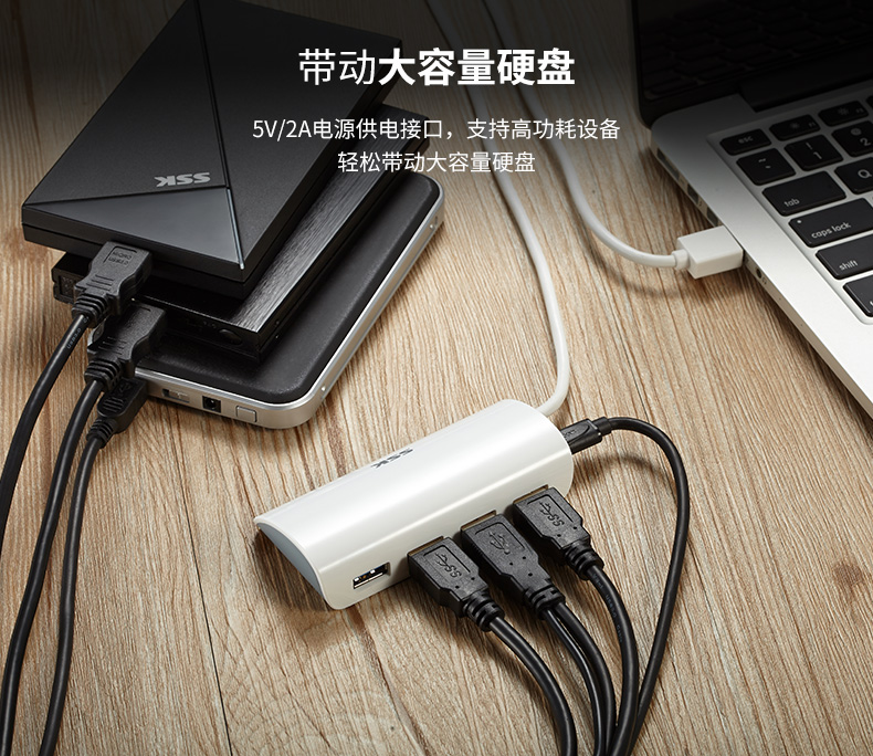 飚王/SSK usb3.0分线器一拖四口集线器多功能扩展HUB带供电SHU808