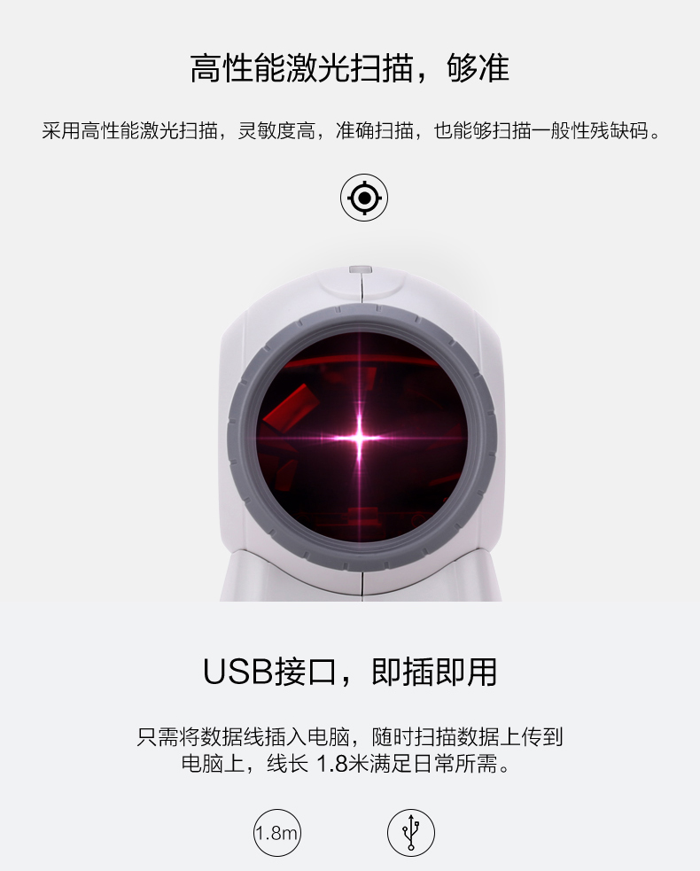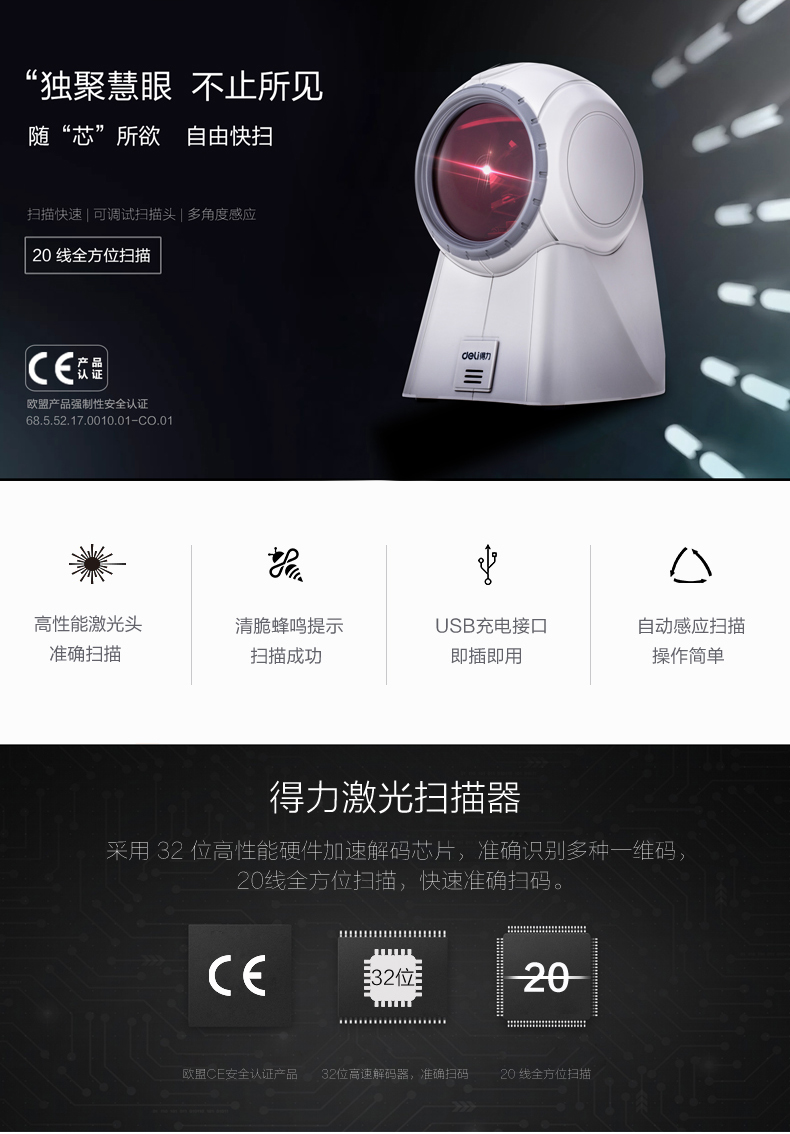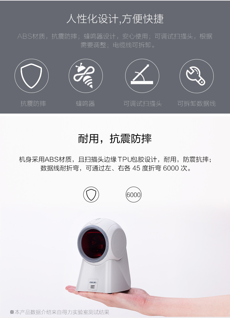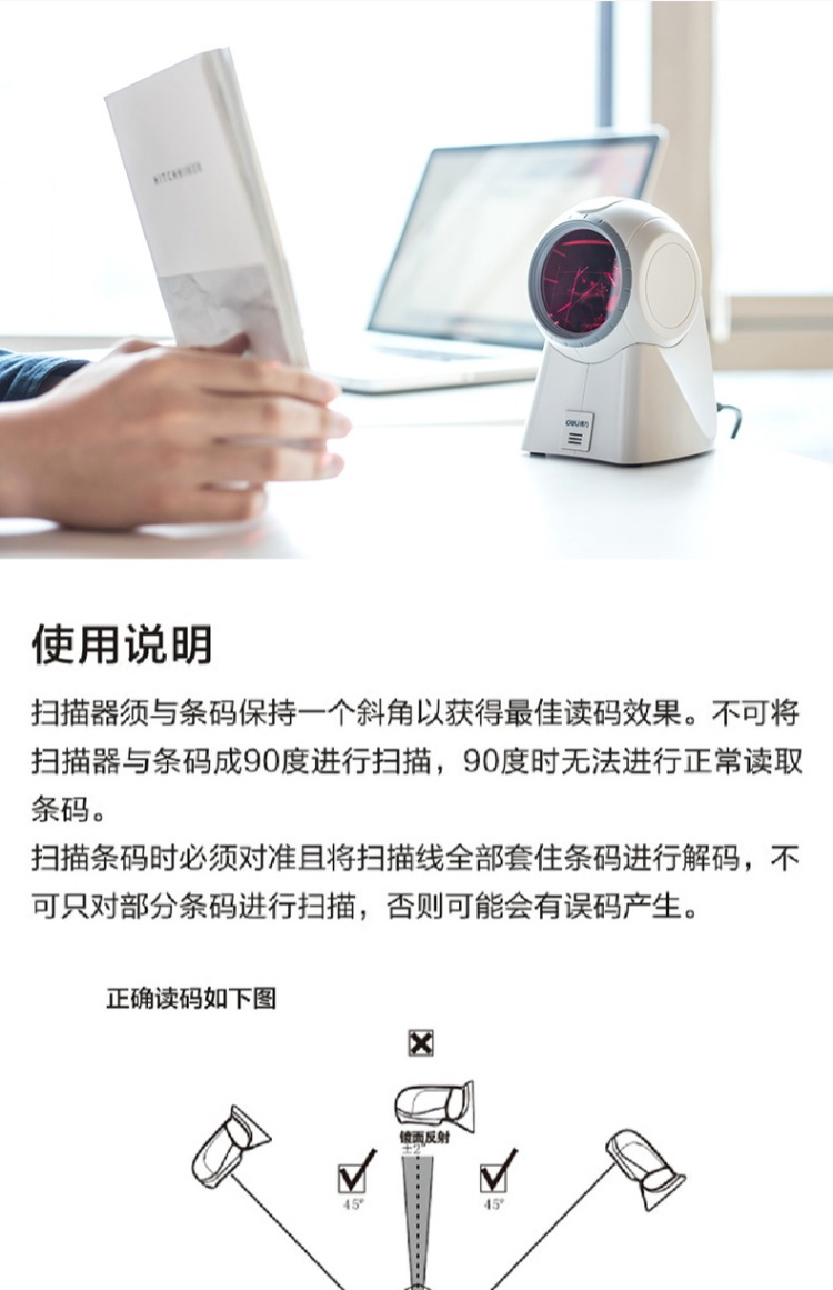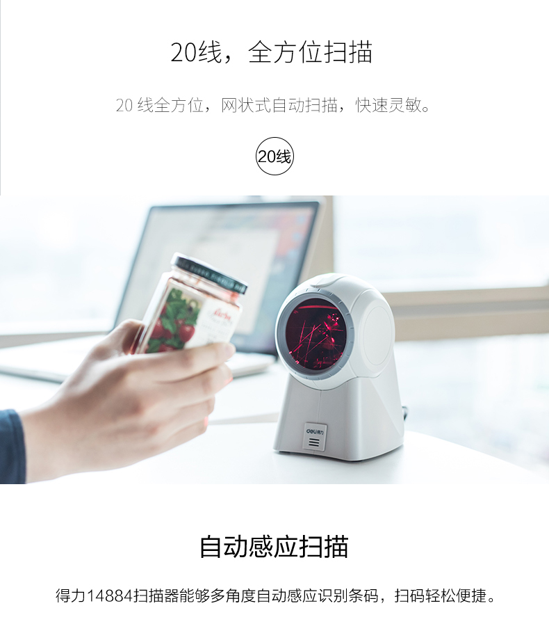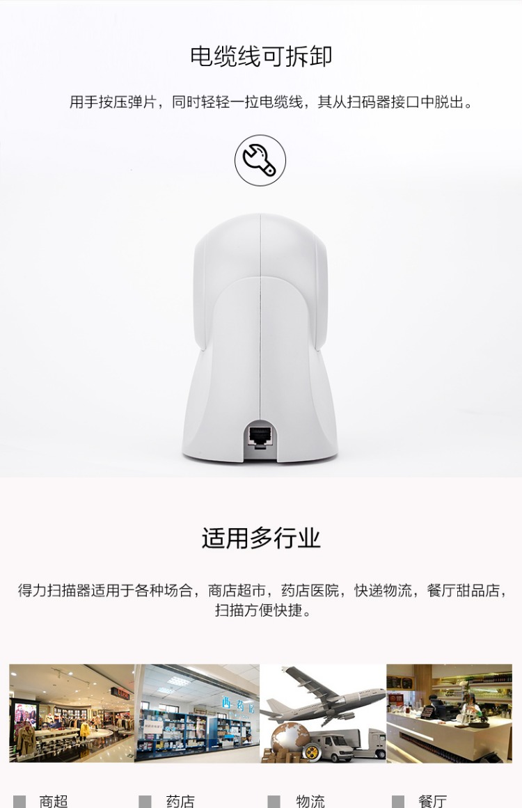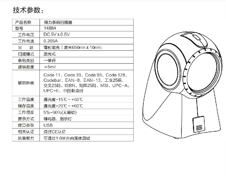 商品名称:得力 扫描枪激光扫描器超市收银扫码器机仪条码抢有线扫码枪 14884