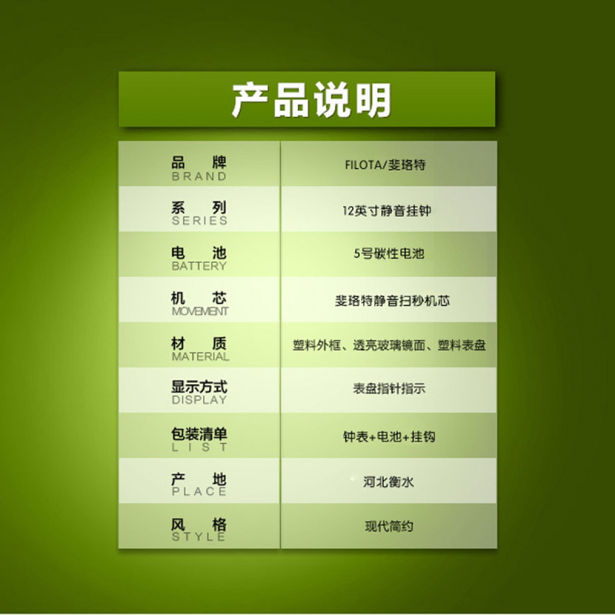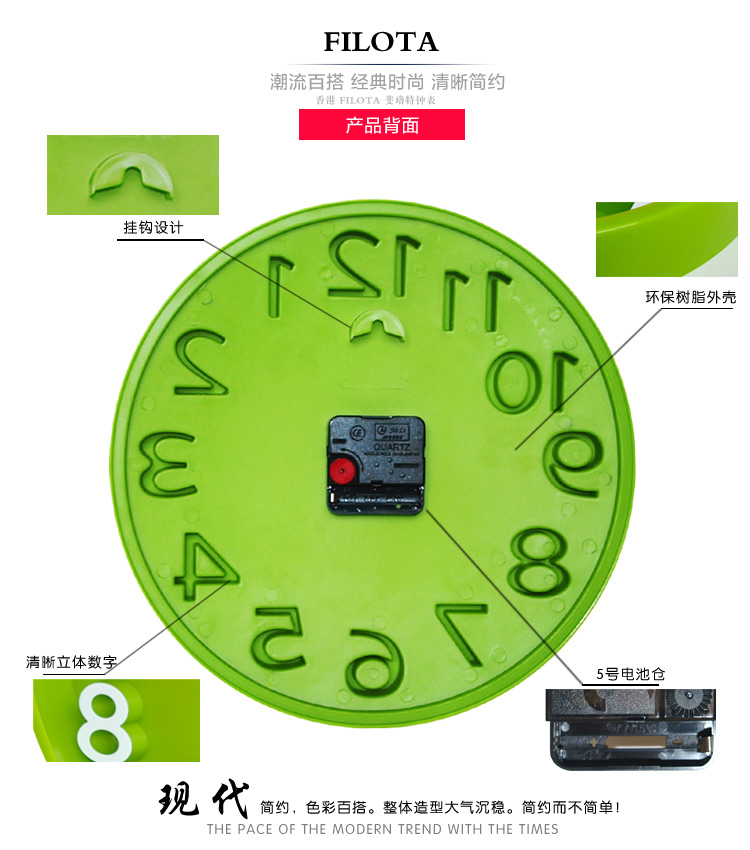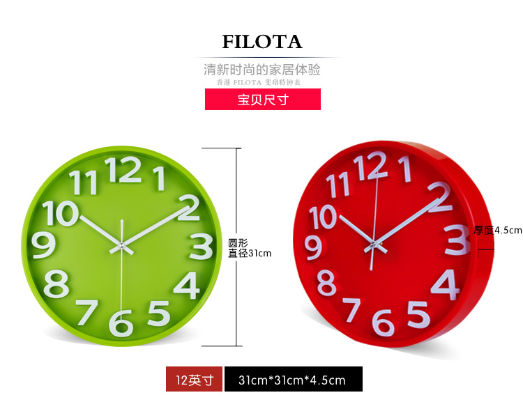 商品名称:国产 创意静音12英寸客厅立体挂钟时尚卧室石英钟表简约现代大挂表时钟
