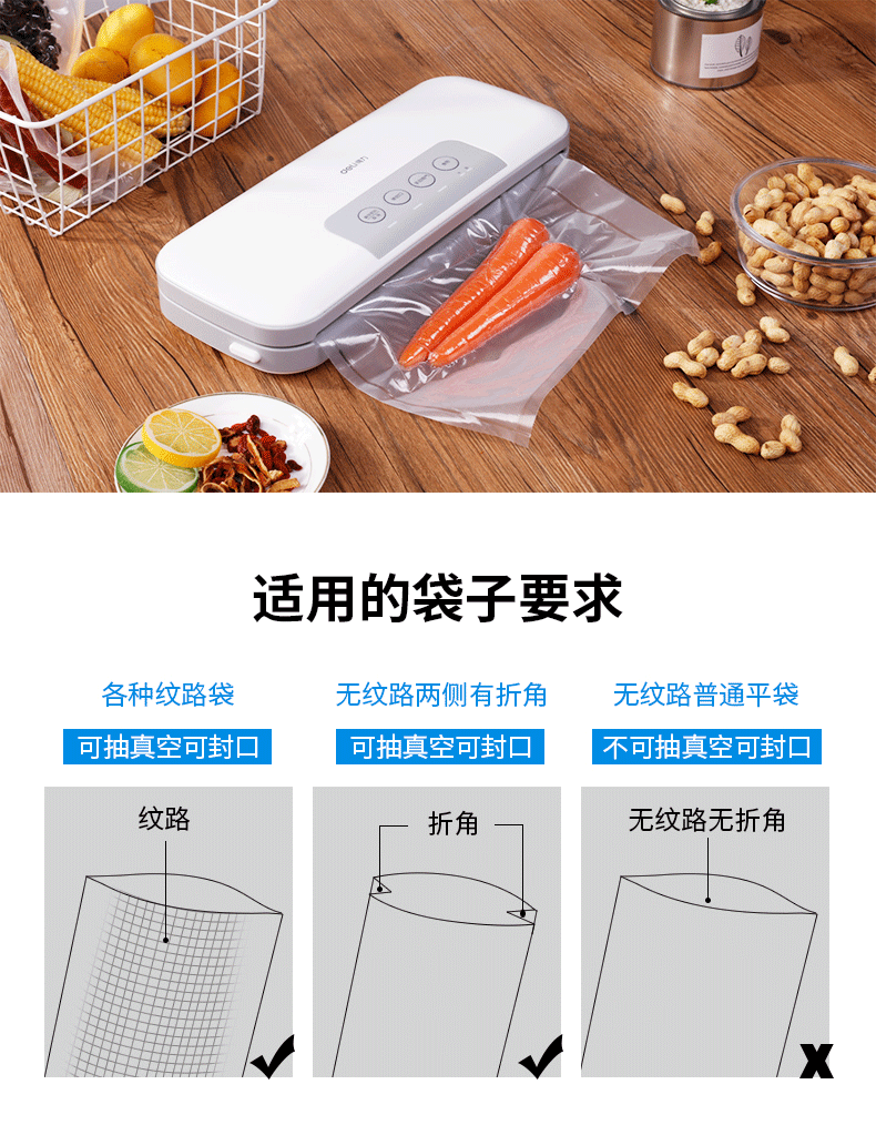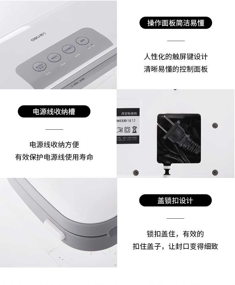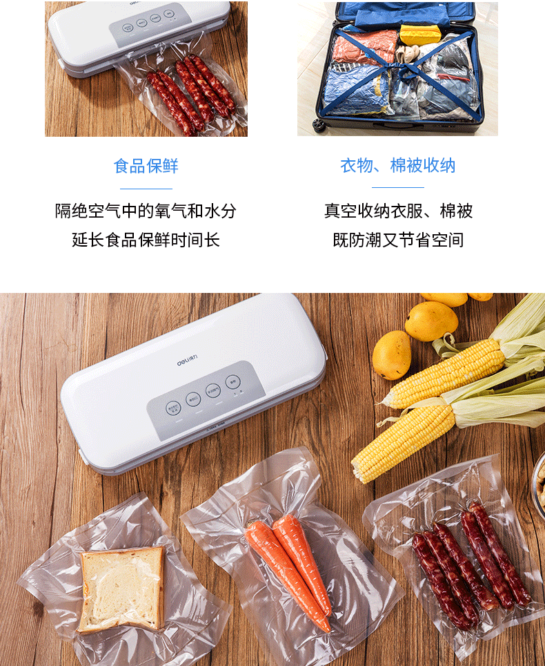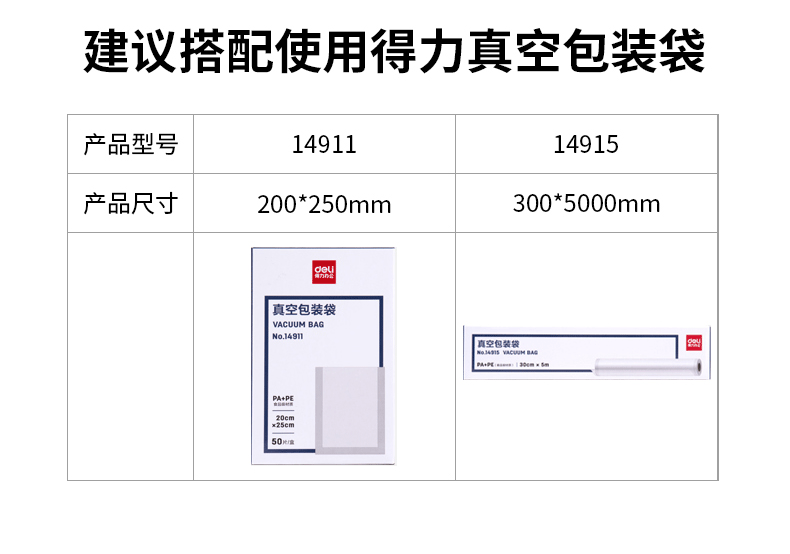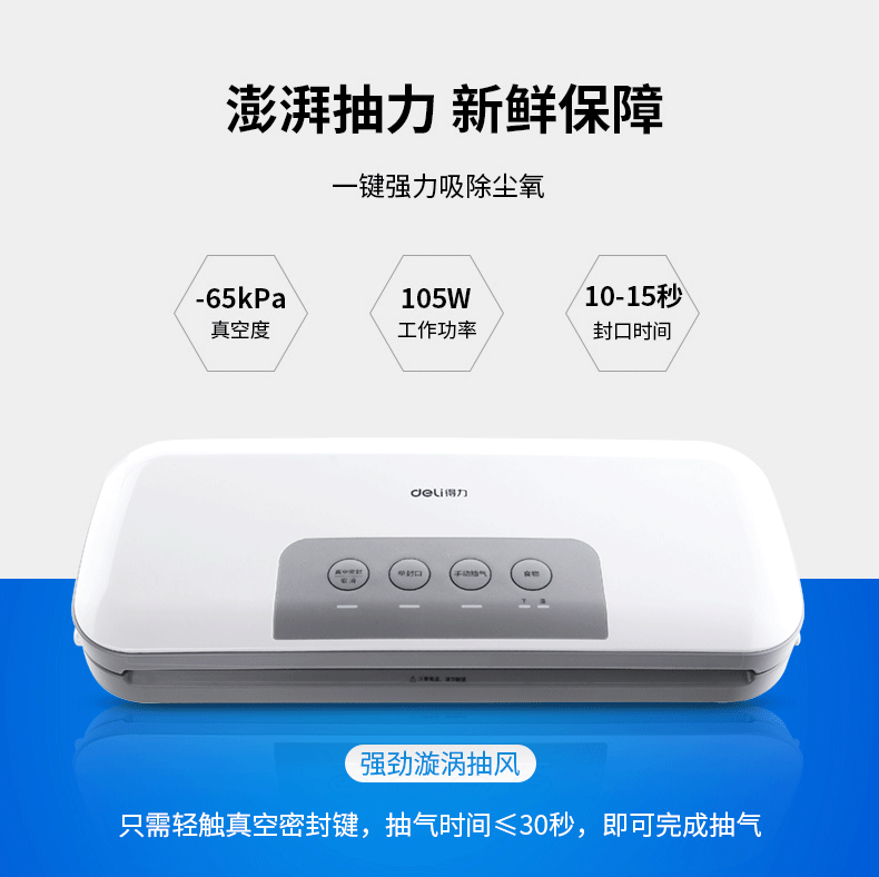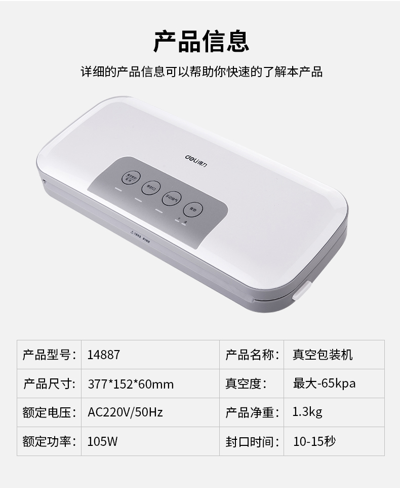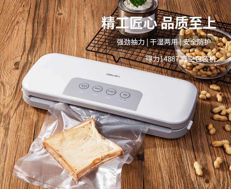 商品名称:得力 真空包装机强劲抽力干湿家商两用带外抽多包连抽 14887