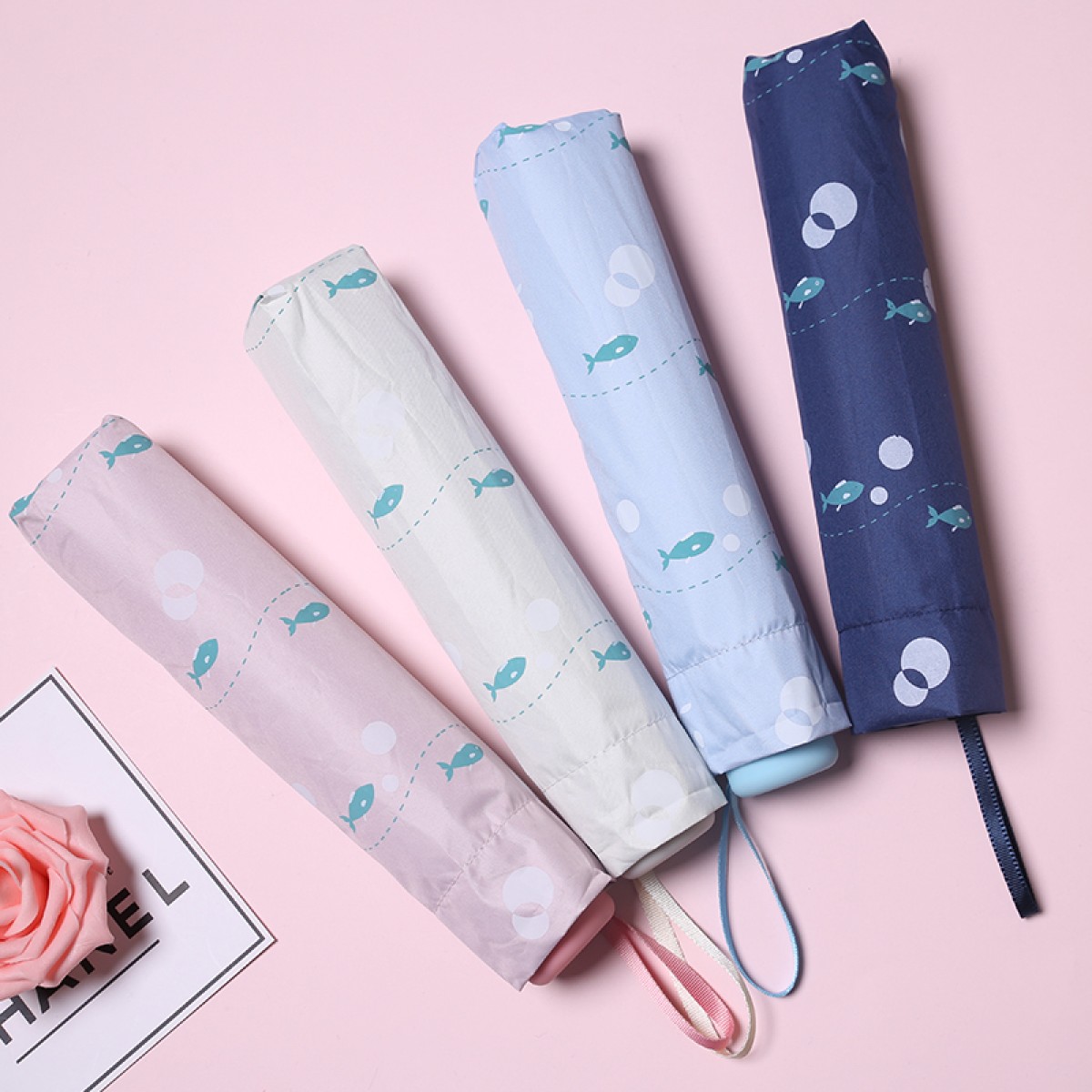商品名称:国产 雨伞晴雨两用 黑胶太阳伞防紫外线清新遮阳伞折叠小鱼三折伞