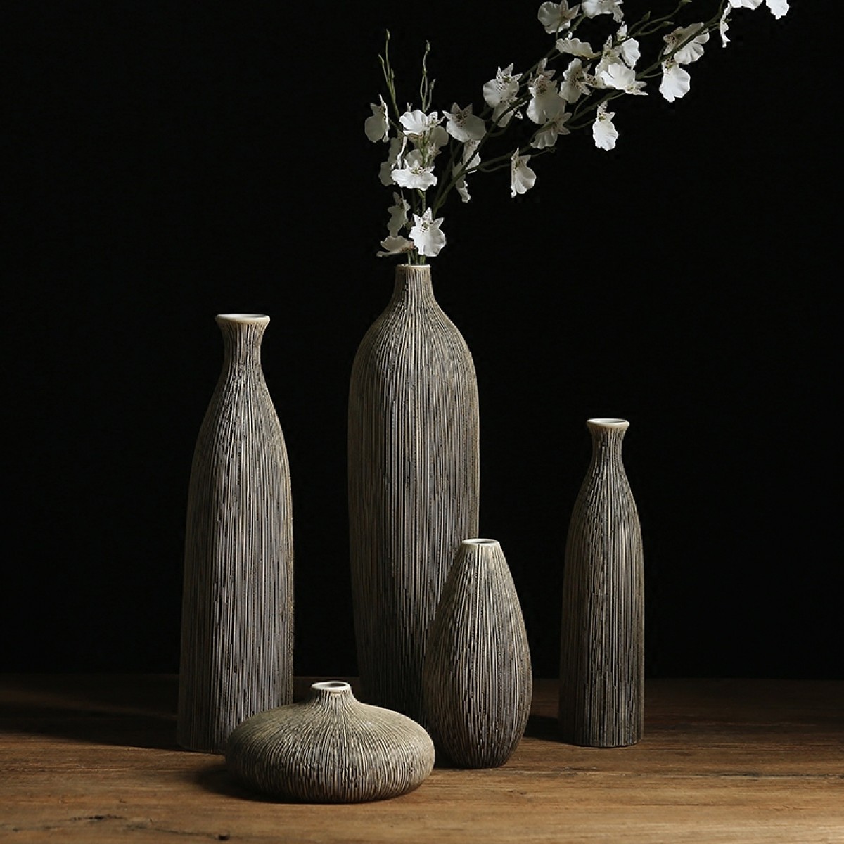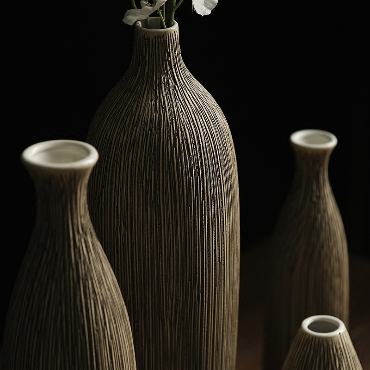 商品名称:国产 现代简约拉丝陶瓷插花花瓶欧式创意客厅白色北欧家居装饰品摆件