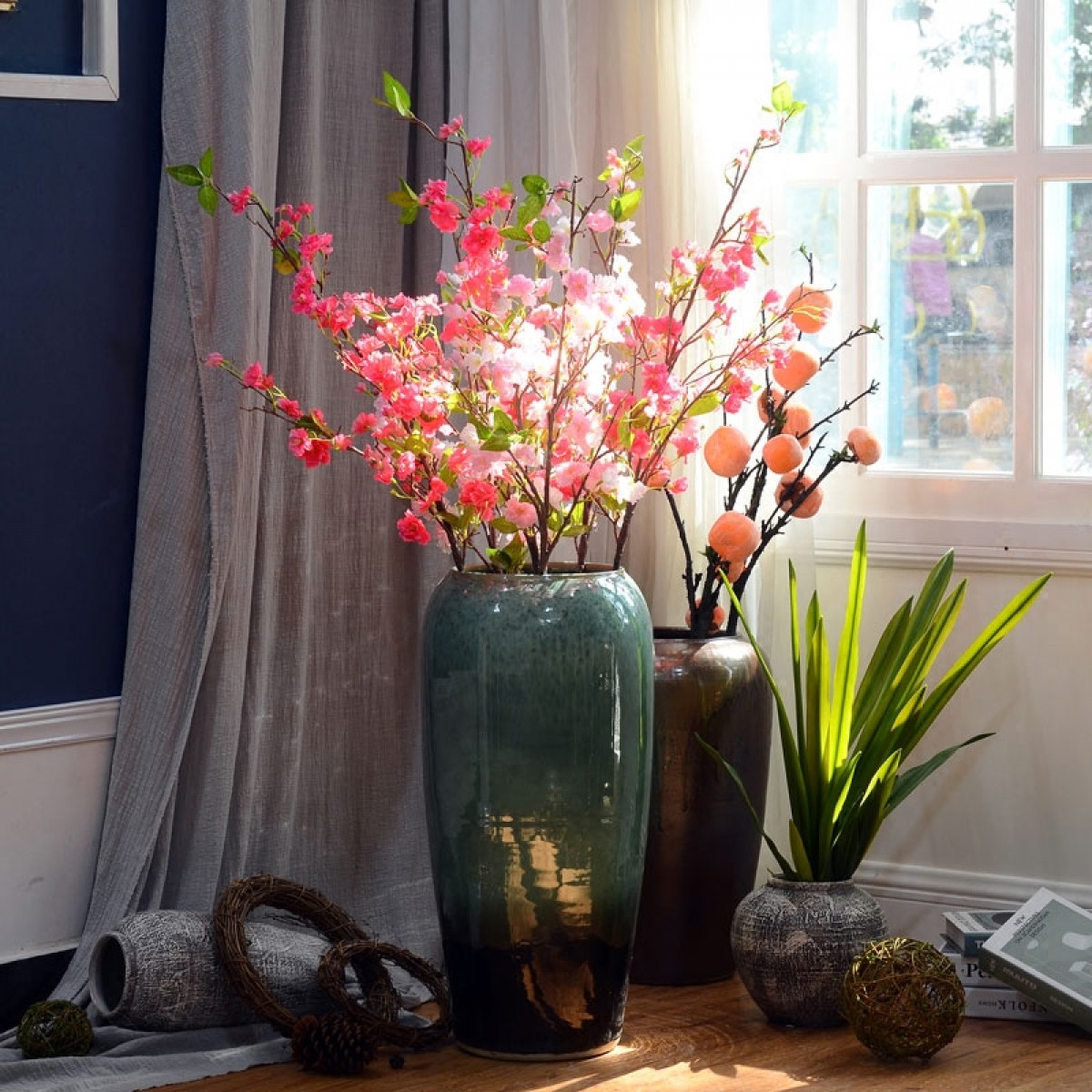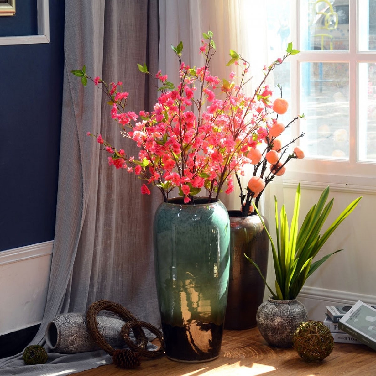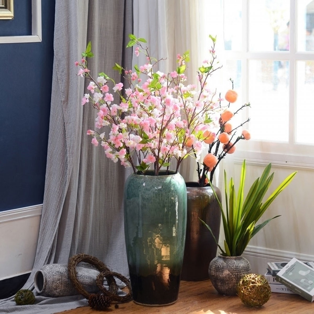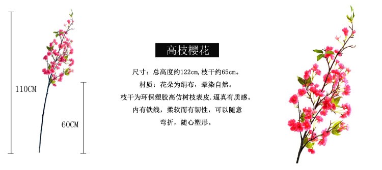 商品名称:国产 高档仿真樱花枝假花塑料花插花单支客厅落地绢花庭院阳台装饰花