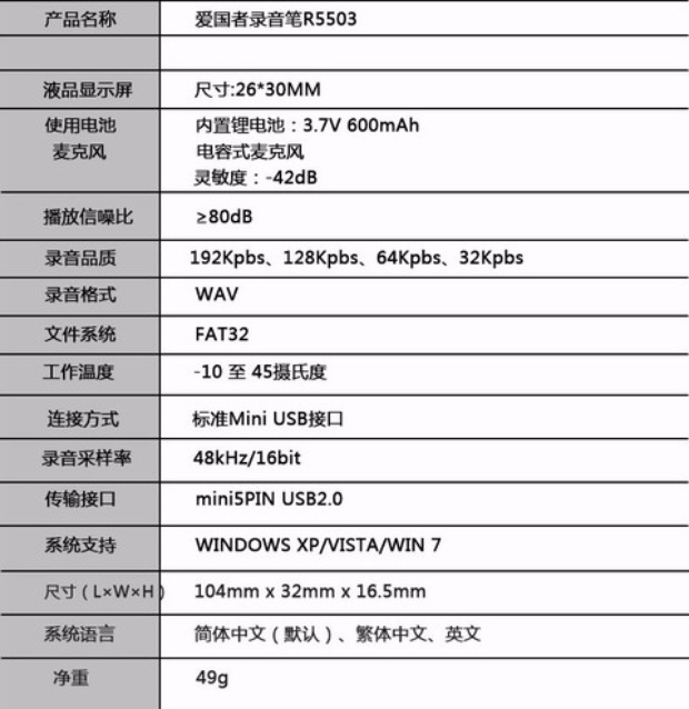 商品名称:爱国者 录音笔8G带收音机可内录 带时间戳 密码开机 复读降噪 R5503