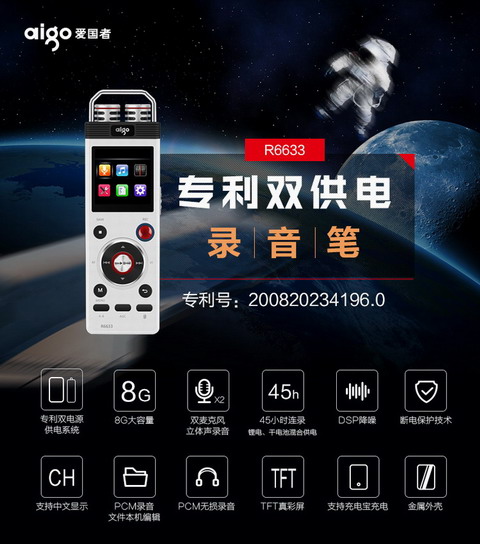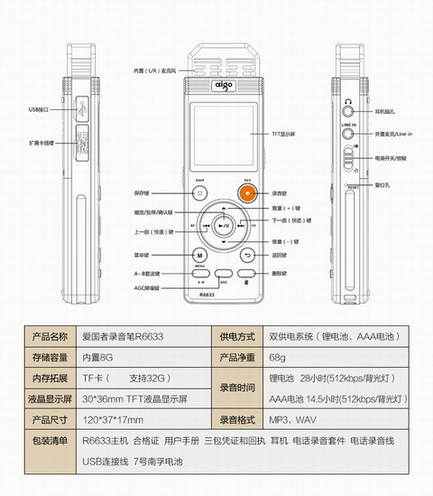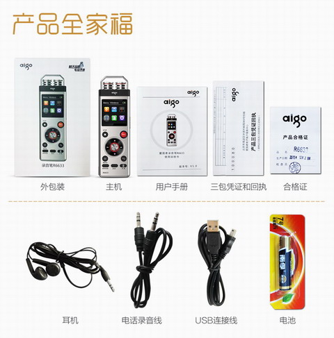 商品名称:爱国者 双供电录音笔8G送16G卡 带收音机 内录声控 灰色 R6633