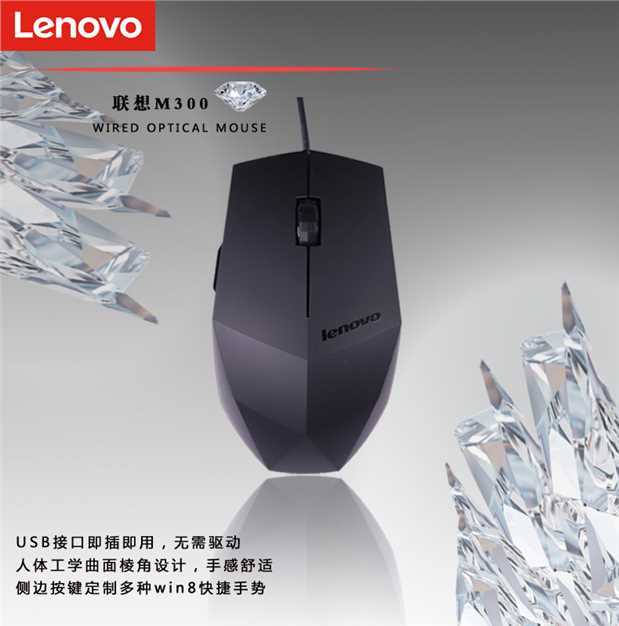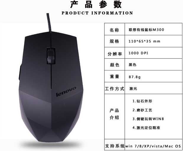 商品名称:联想 有线鼠标 办公游戏USB磨砂鼠标笔记本台式电脑 M300