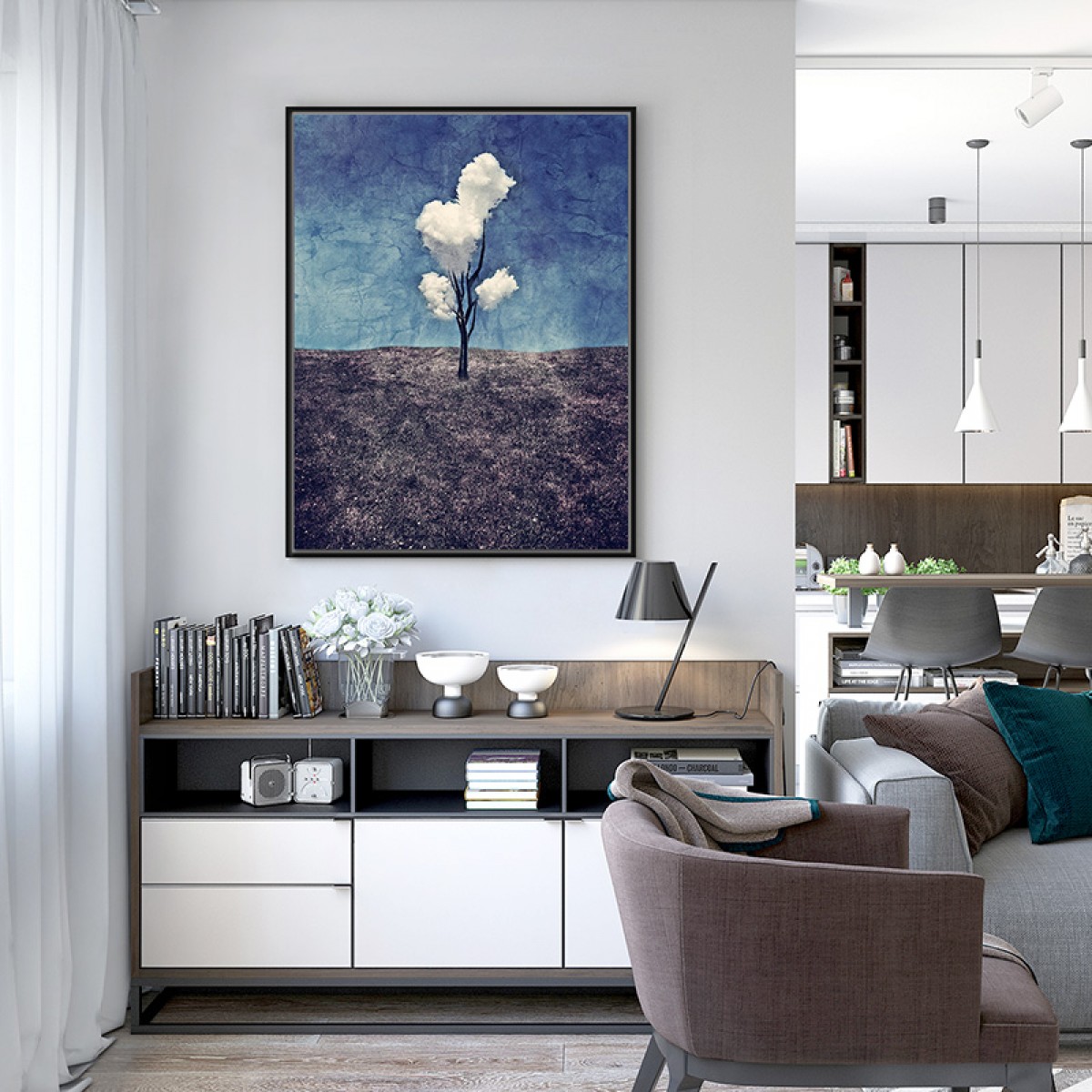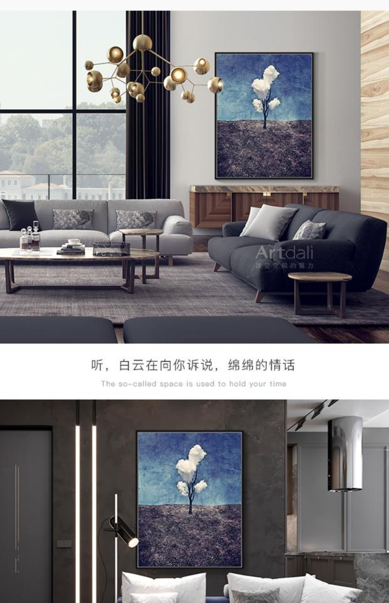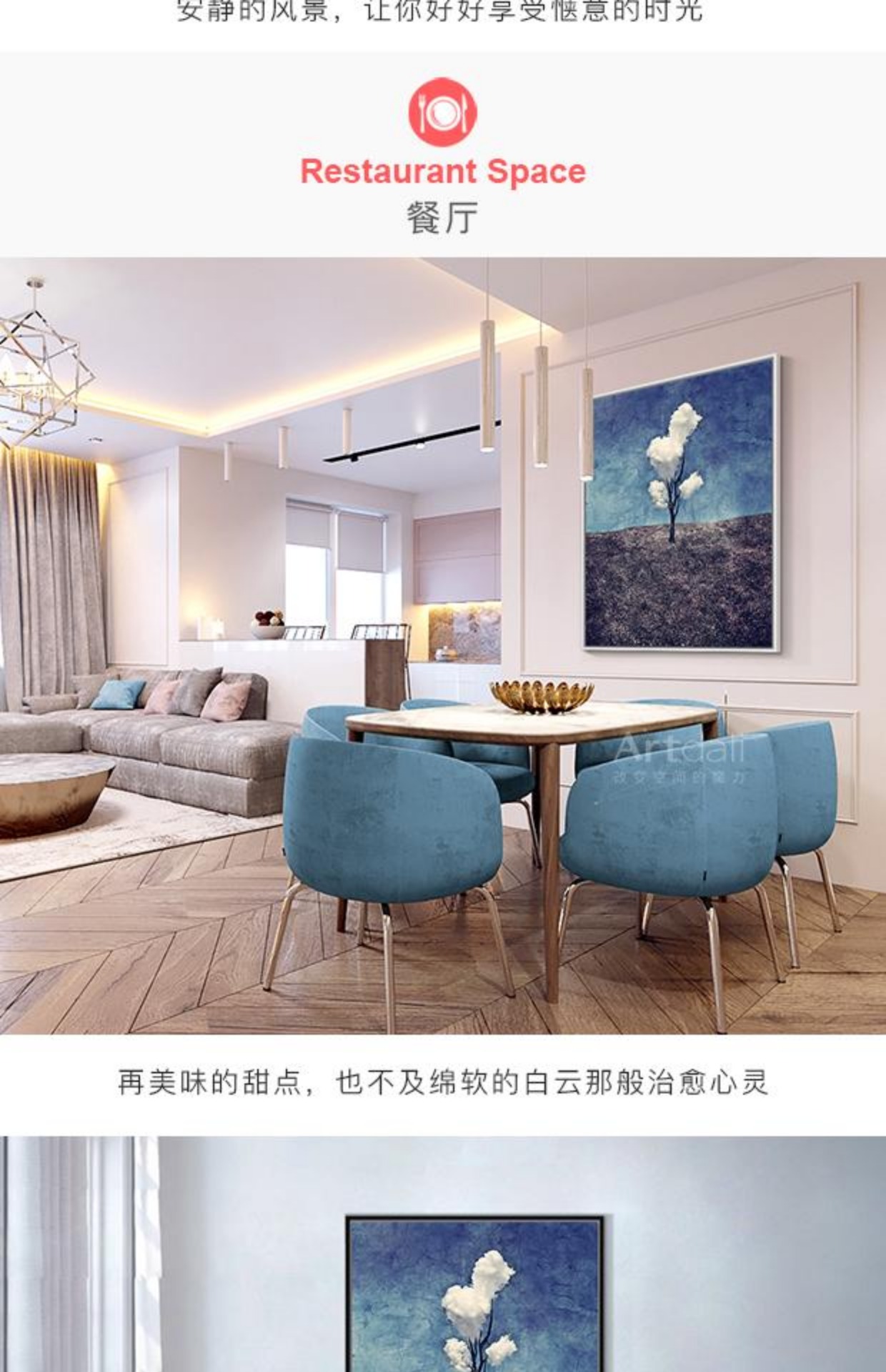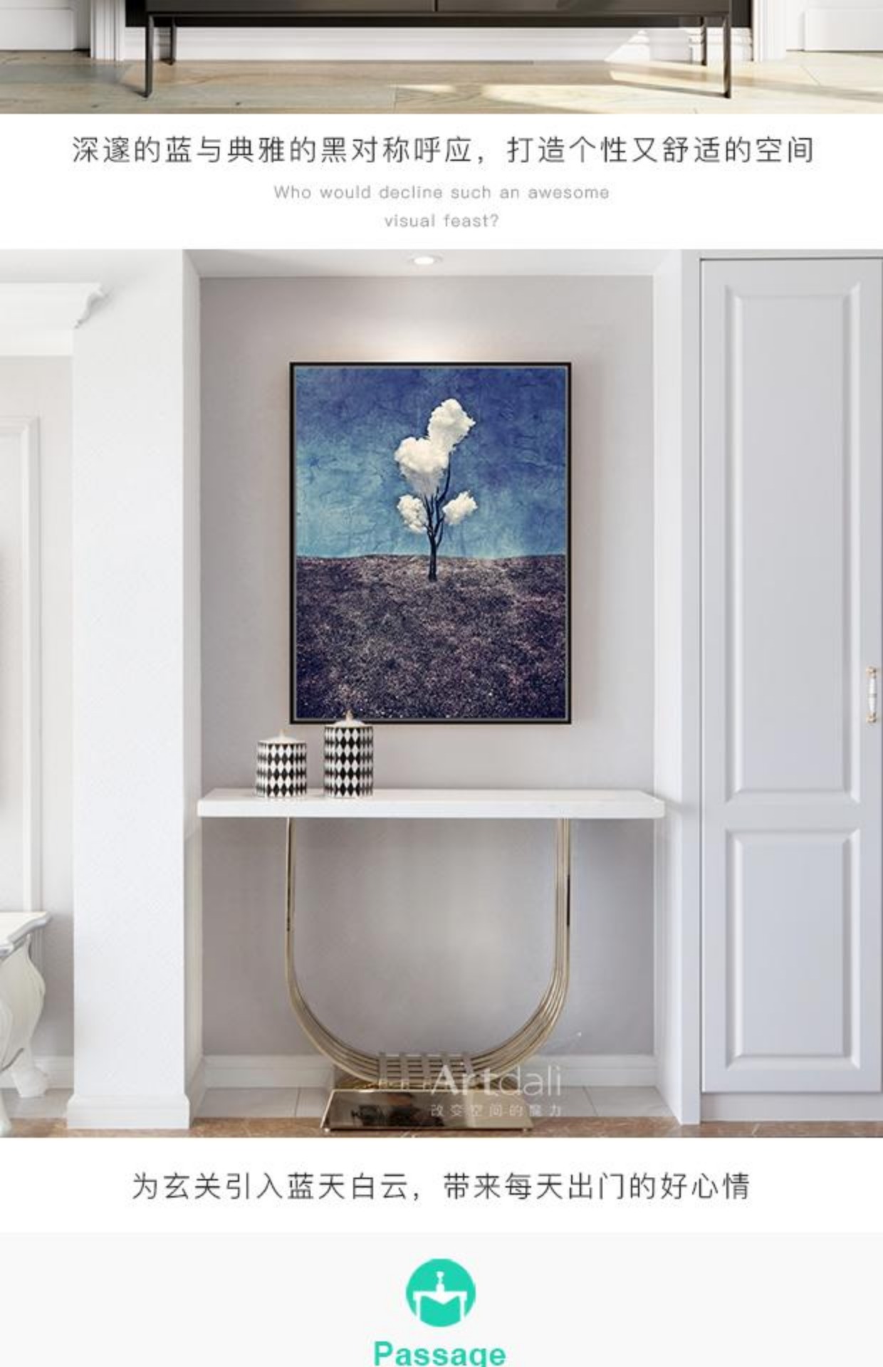 商品名称:国产 玄关过道油画现代客厅装饰画餐厅简约抽象画-三朵白云