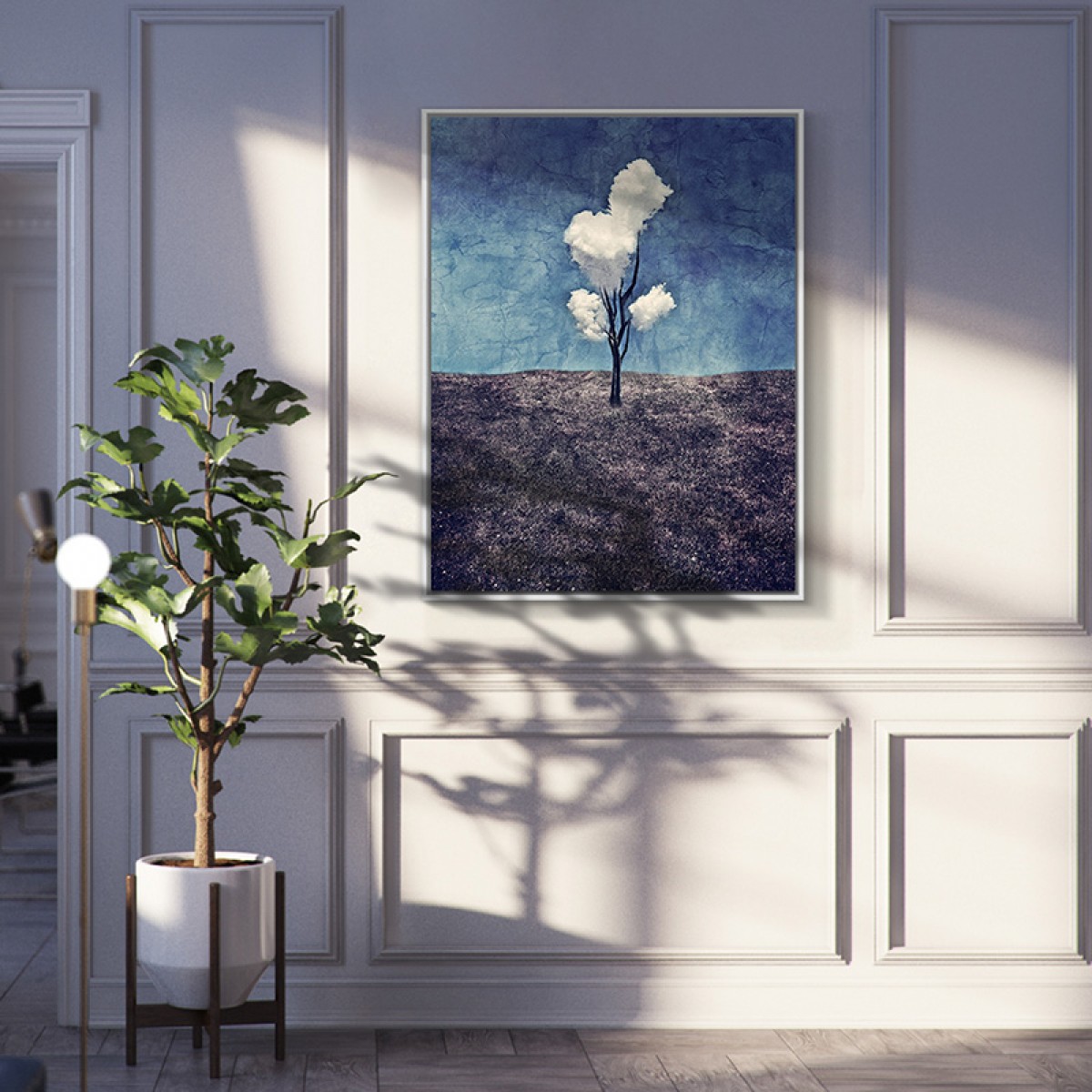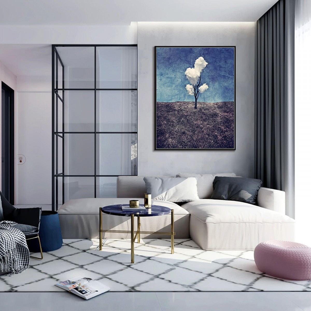 国产 玄关过道油画现代客厅装饰画餐厅简约抽象画-三朵白云