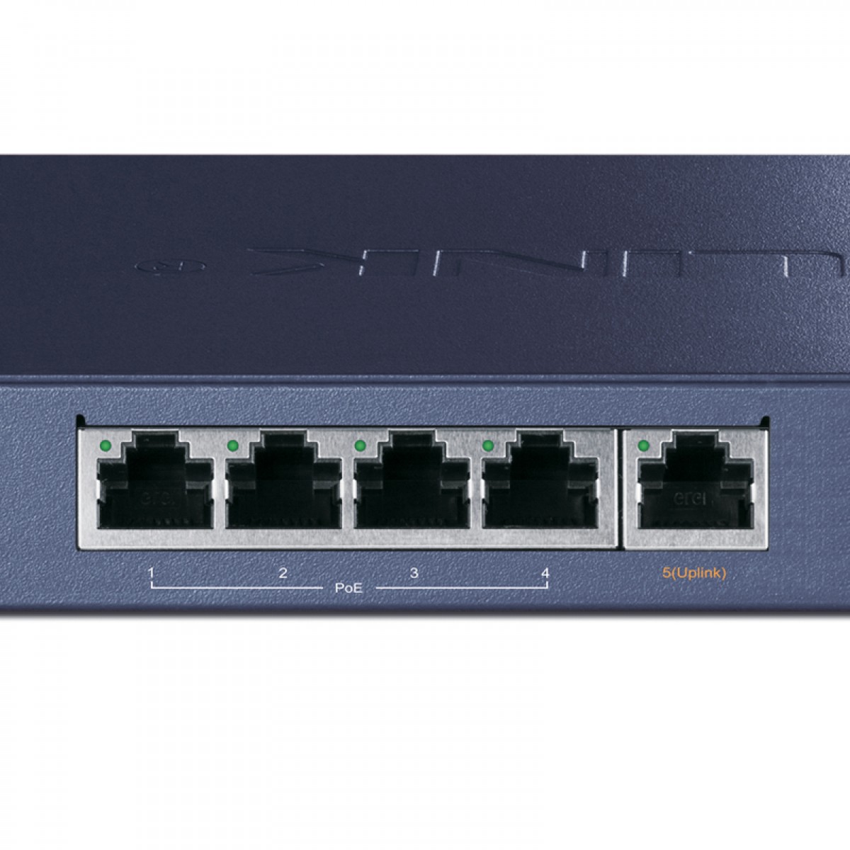 提供5个10/100/1000M自适应RJ45端口,包括4个PoE端口和1个Uplink端口;