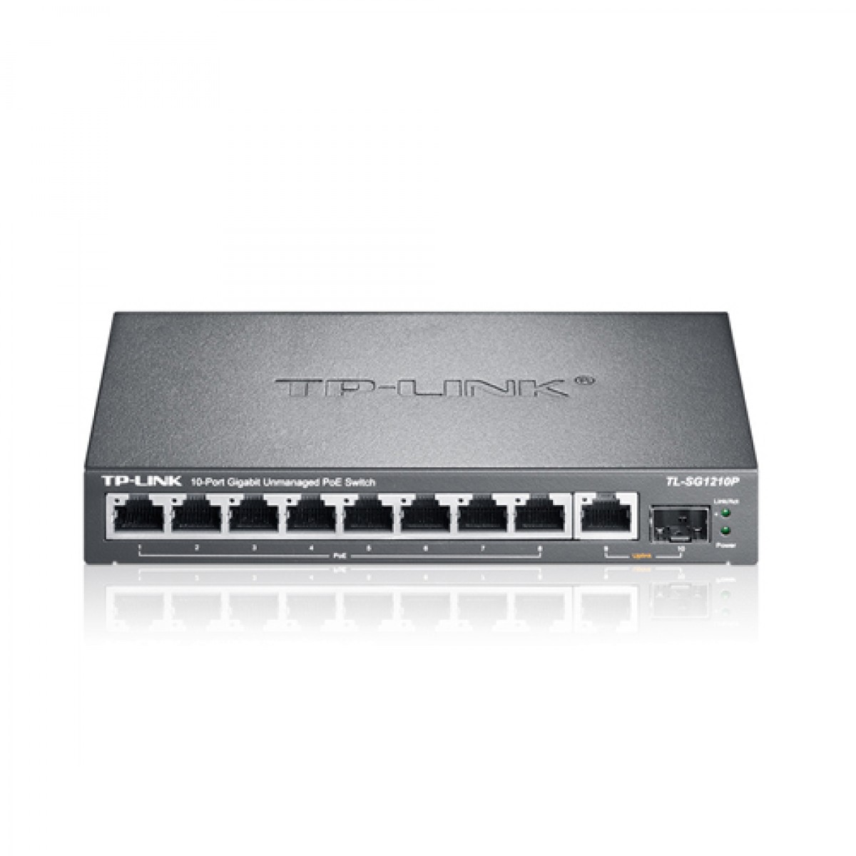 TL-SG1210P是TP-LINK专为满足千兆接入、PoE供电的网络环境而自主研发设计的全千兆非网管PoE交换机,具有9个千兆RJ45端口和1个SFP光纤模块扩展插槽,其中1-8号千兆RJ45端口均支持802.3af/at标准PoE供电,整机最大供电功率达54W,单端口最大供电功率达30W。