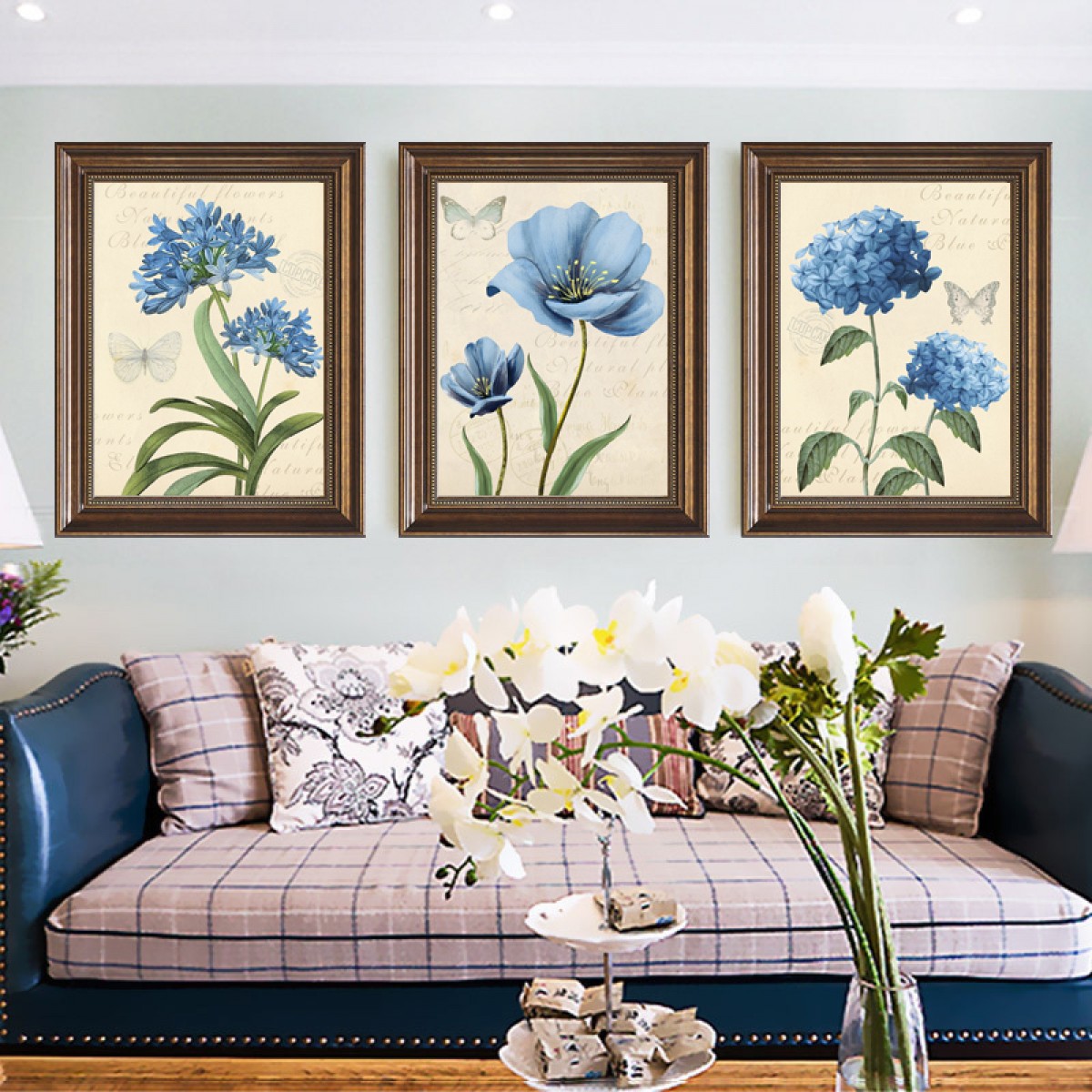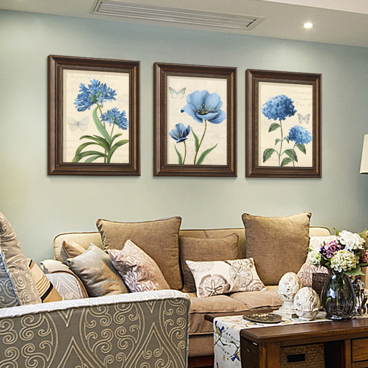 国产 美式复古装饰画客厅沙发背景墙挂画乡村风格欧式田园花鸟三联画