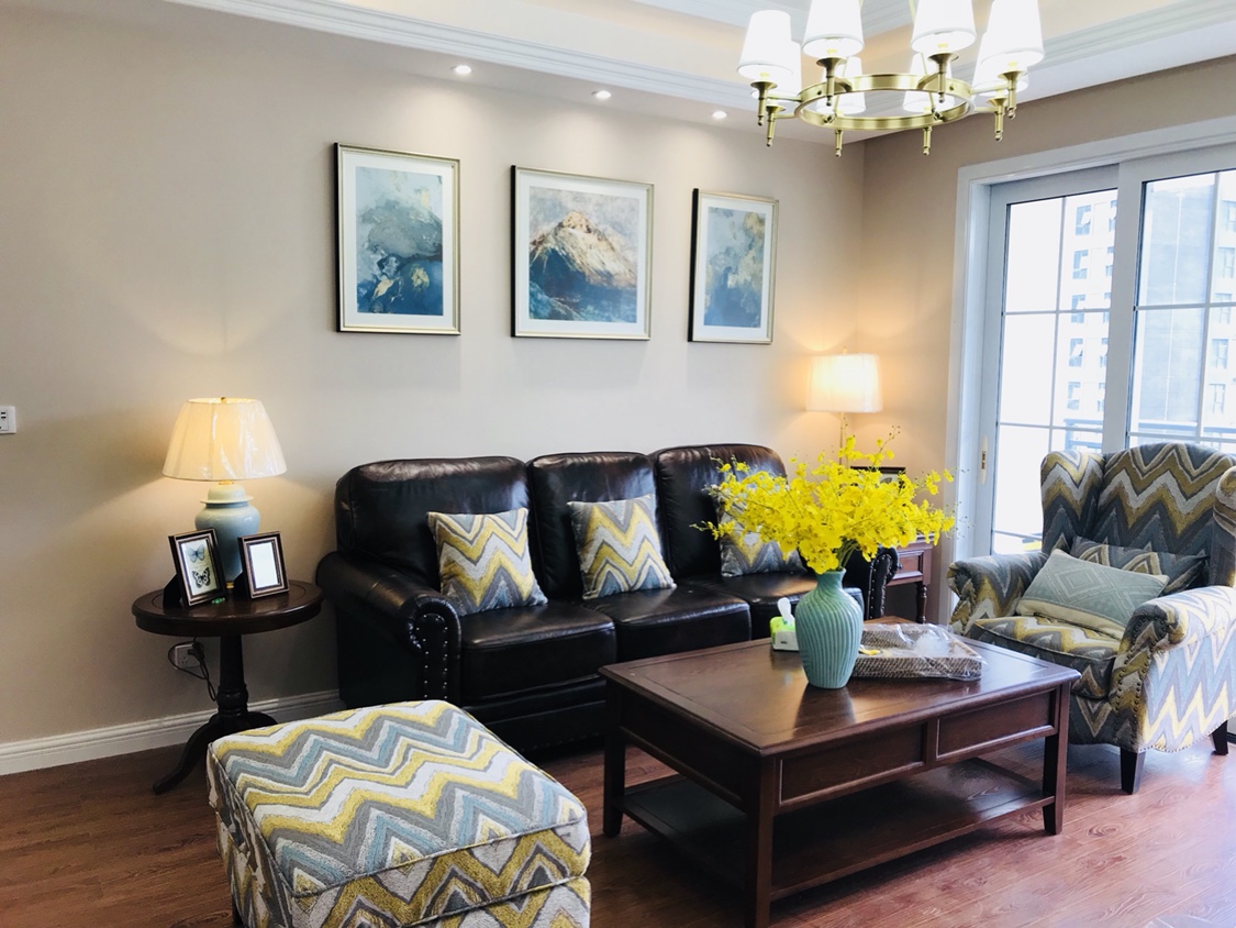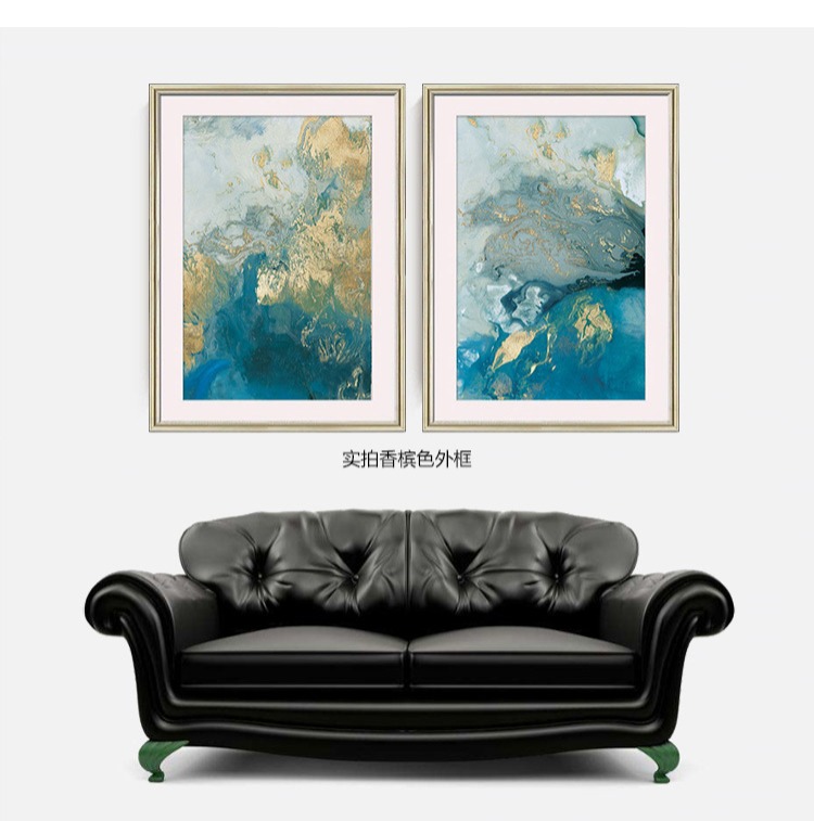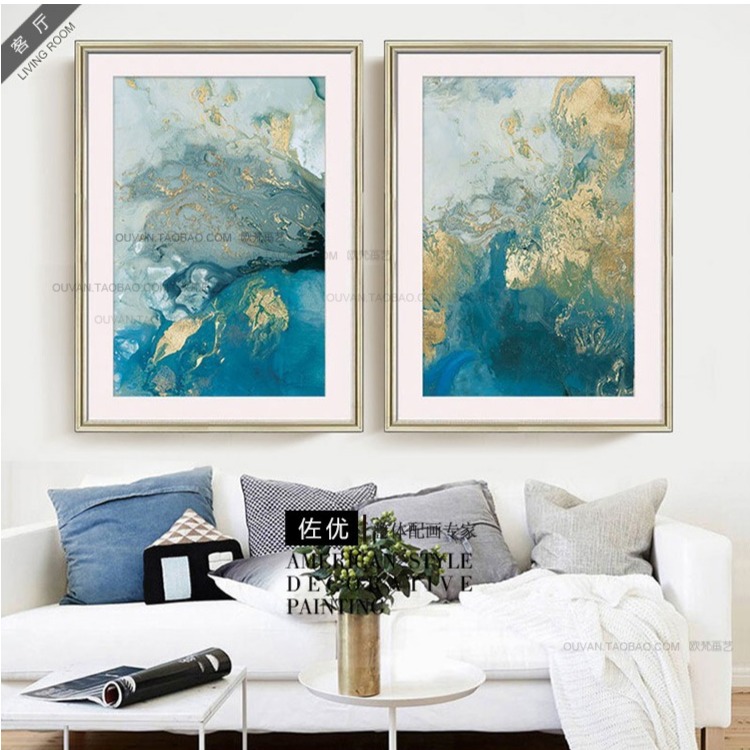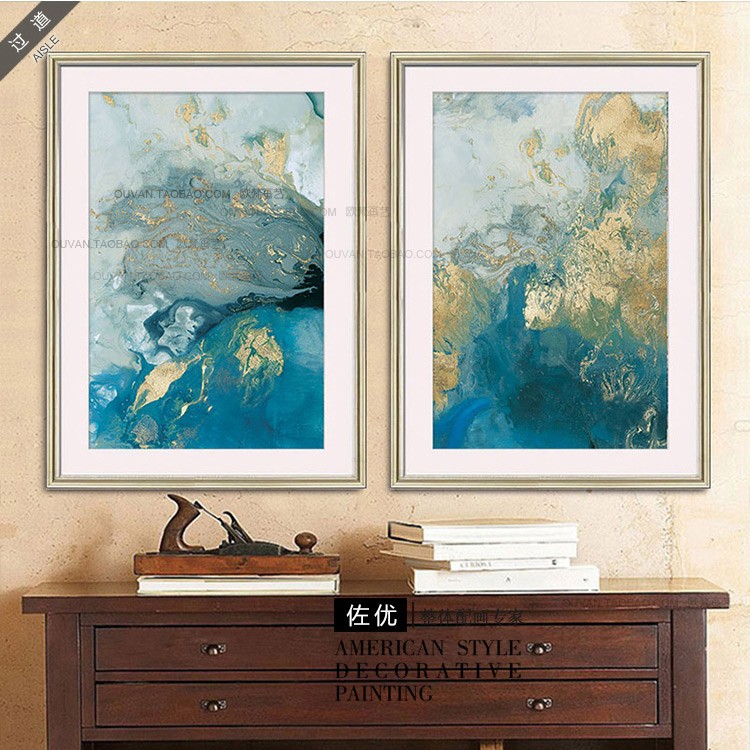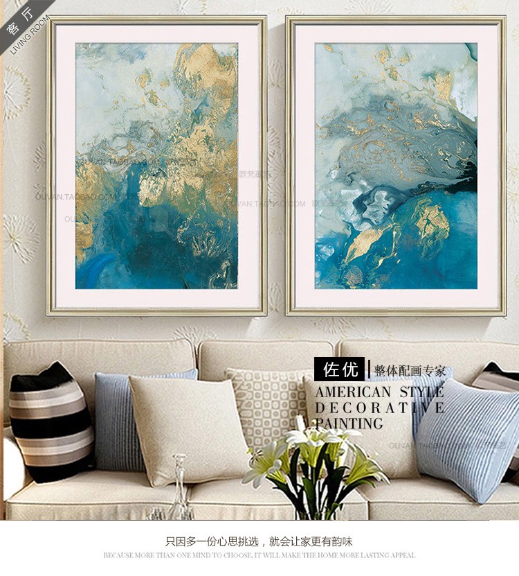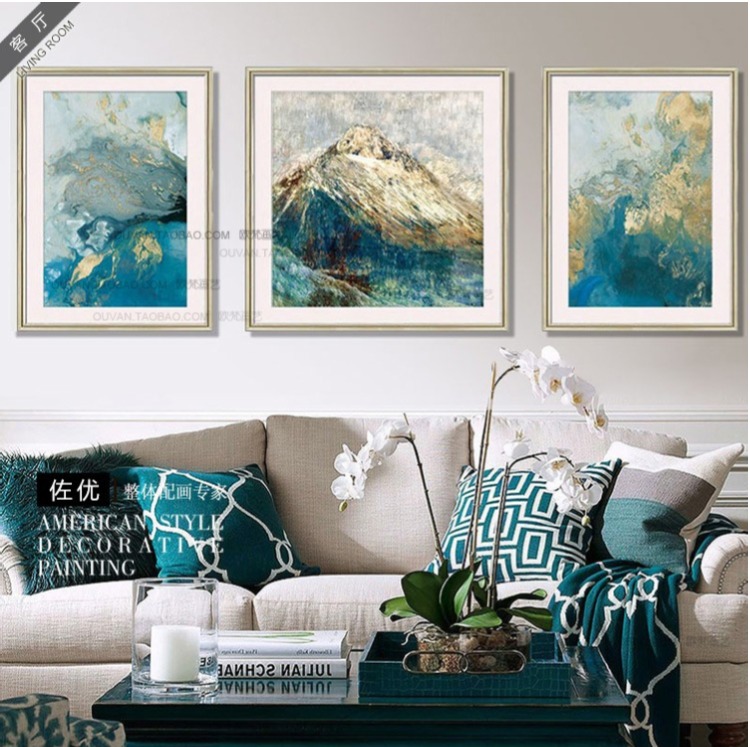国产 现代美式客厅沙发装饰画抽象三联壁画玄关画酒店画卧室画 海洋