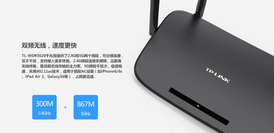 商品名称:TP-LINK TL-WDR5620千兆版端口AC1200高速双频无线路由器WIFI穿墙