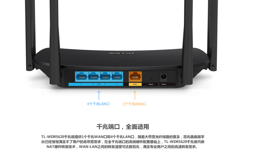 TP-LINK TL-WDR5620千兆版端口AC1200高速双频无线路由器WIFI穿墙
