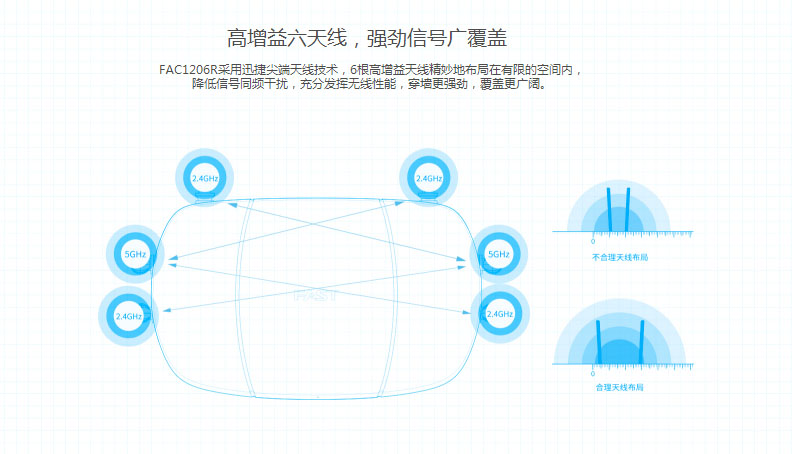 商品名称:迅捷 FAC1206R 1200M 双频路由器家用穿墙高速WIFI六天线11AC
