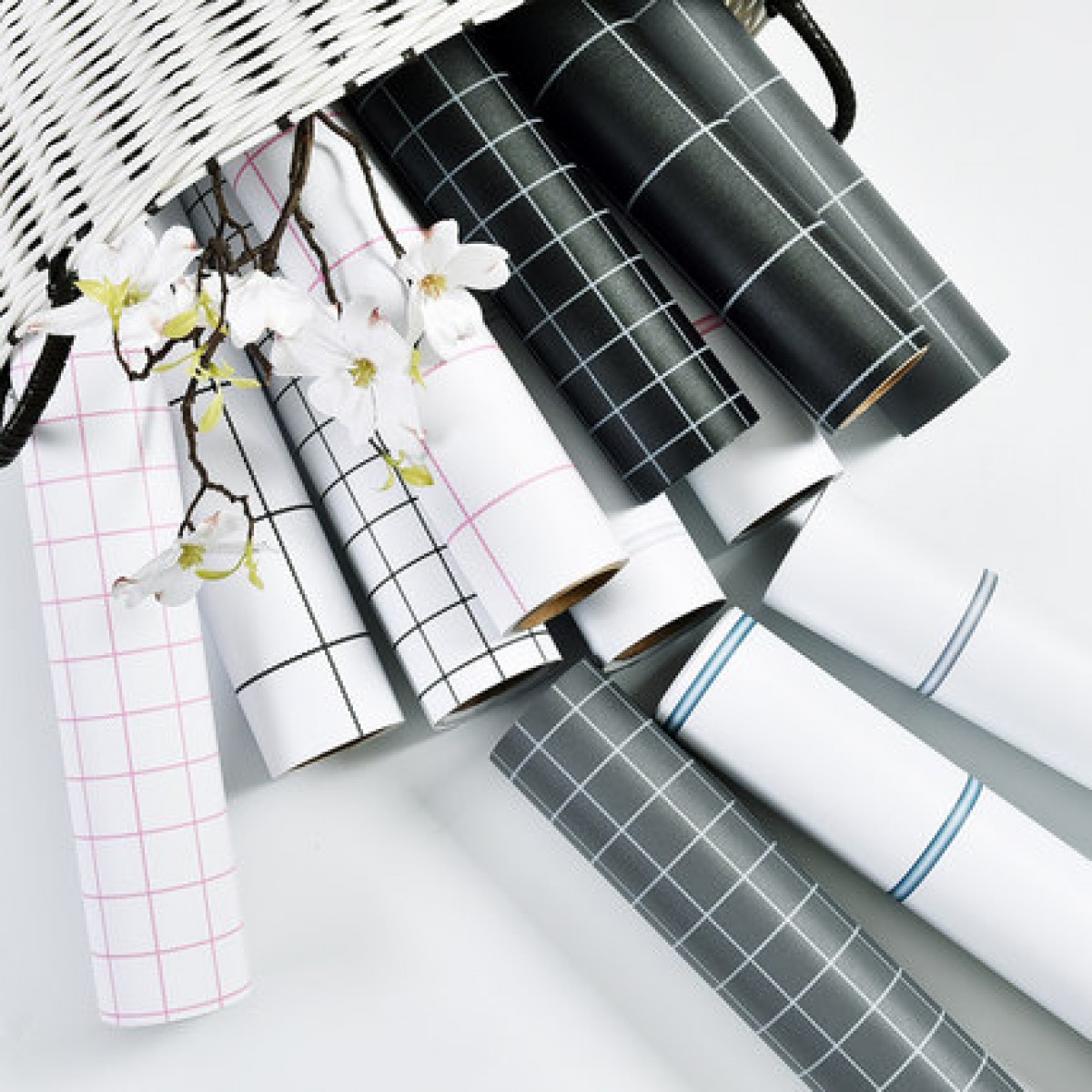 黑白线格 粉色线格 白色深灰格 白色黑格为7.5厘米左右,北欧小格子是3厘米左右,北欧条纹的间隔是15厘米左右。