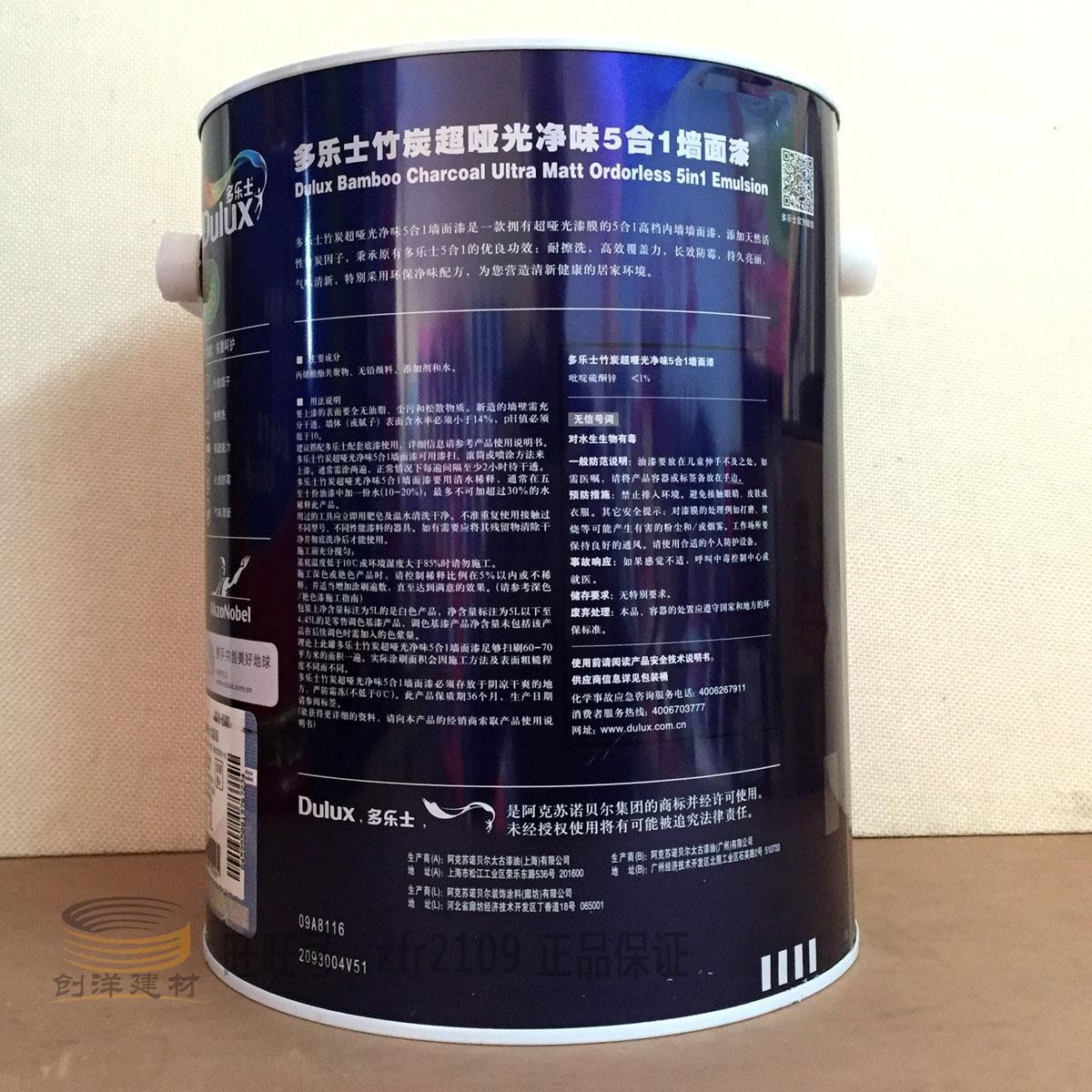 多乐士竹炭超哑光净味5合1墙面漆 多乐士五合一乳胶漆 多乐士涂料。经典5大功能,竹炭净味配方,全面解决墙面问题。哑光效果墙面更出色,持久靓丽,更环保。多乐士内墙哑光五合一5L,18L涂料。