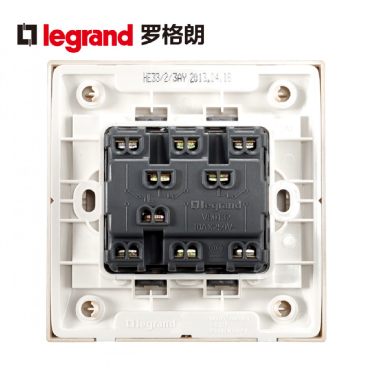 罗格朗 3开双控带荧光86型三开双控荧光开关插座面板三位双控