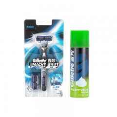 吉列 锋速3突破剃须刀架含2刀头+刮胡泡沫210g柠檬薄荷任选