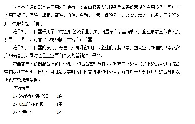 2、只有当“评价”键被触动 10 秒钟内(可调),评价信息方可录入,有效避免重复统计。