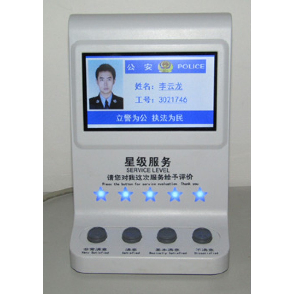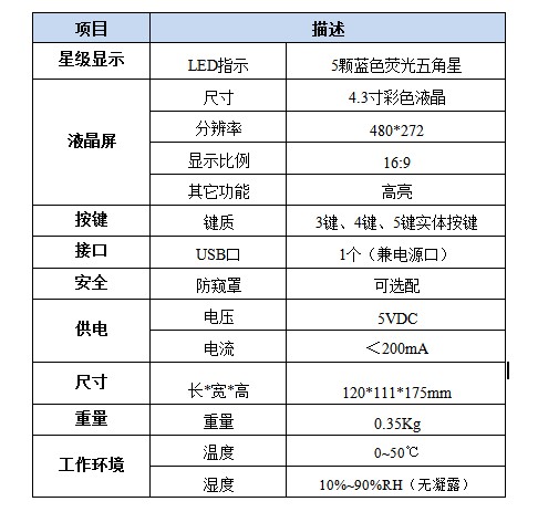 • 五颗服务星级评价灯,显示服务星级