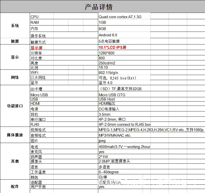 规格参数