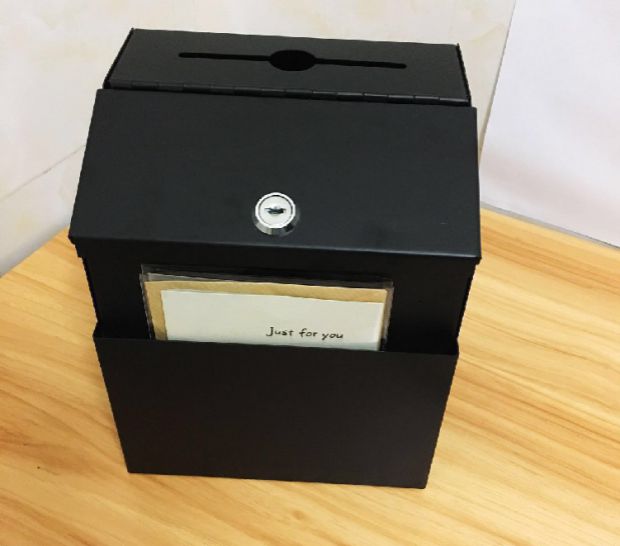 1.信报箱整体尺寸:长19CM*宽15CM*高21.5CM.2.投放口尺寸:12*0.5CM.3.采用优质冷板折弯制作,颜色分别高雅黑与浪漫白.4.背部配有螺钉和塑胶塞,可悬挂于墙面,也可放在桌面.5.顶部配一把锁和二把钥匙。前面有个小口袋,放入空白的纸和卡片.
