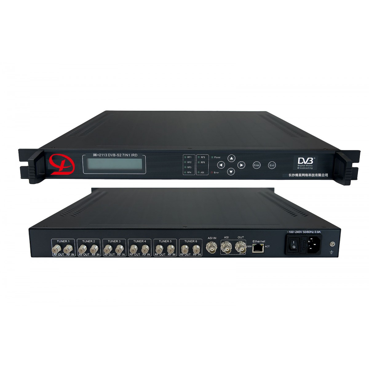七合一卫星接收机,是有线数字电视前端的主要设备之一,接收来自卫星的6路信号和1路ASI信号,进行复用,输出1路ASI接口TS流。