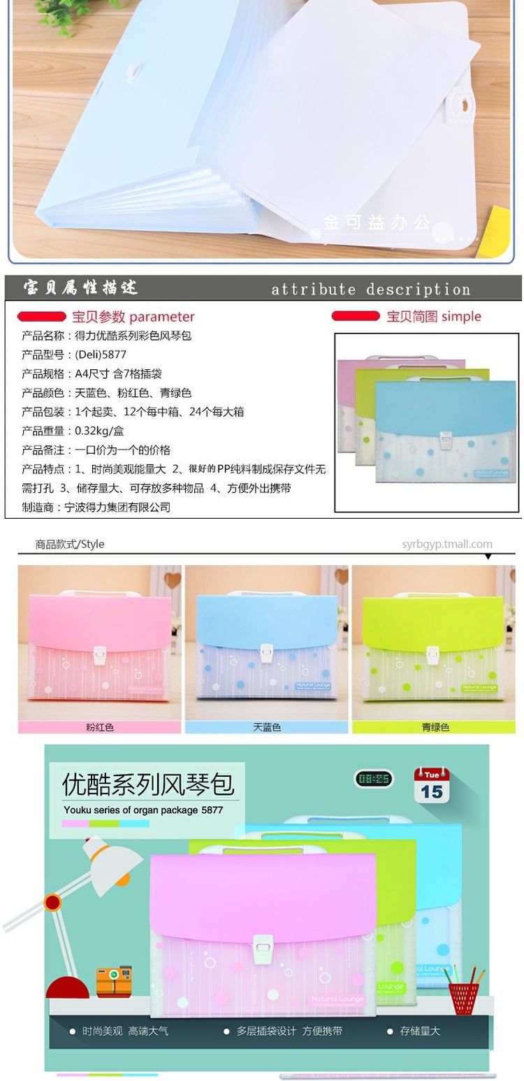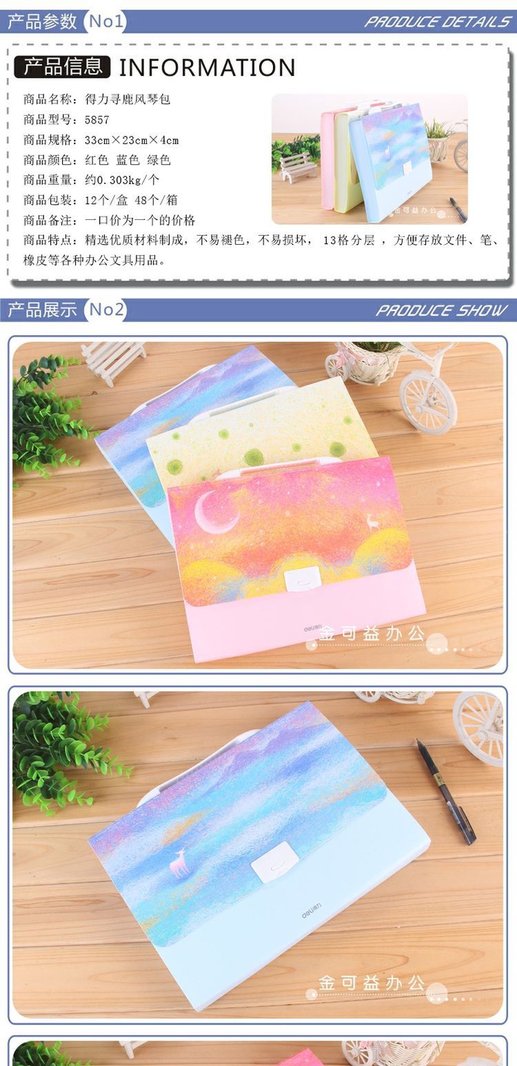 商品名称:得力 A4风琴包手提试卷夹多层文件夹票据袋收纳公文包资料包13格收纳盒分类文件包大容量文件袋