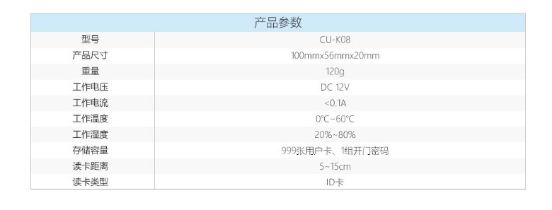 商品名称:COUNS/高优 门禁刷卡密码机 门禁一体机 CU-K08