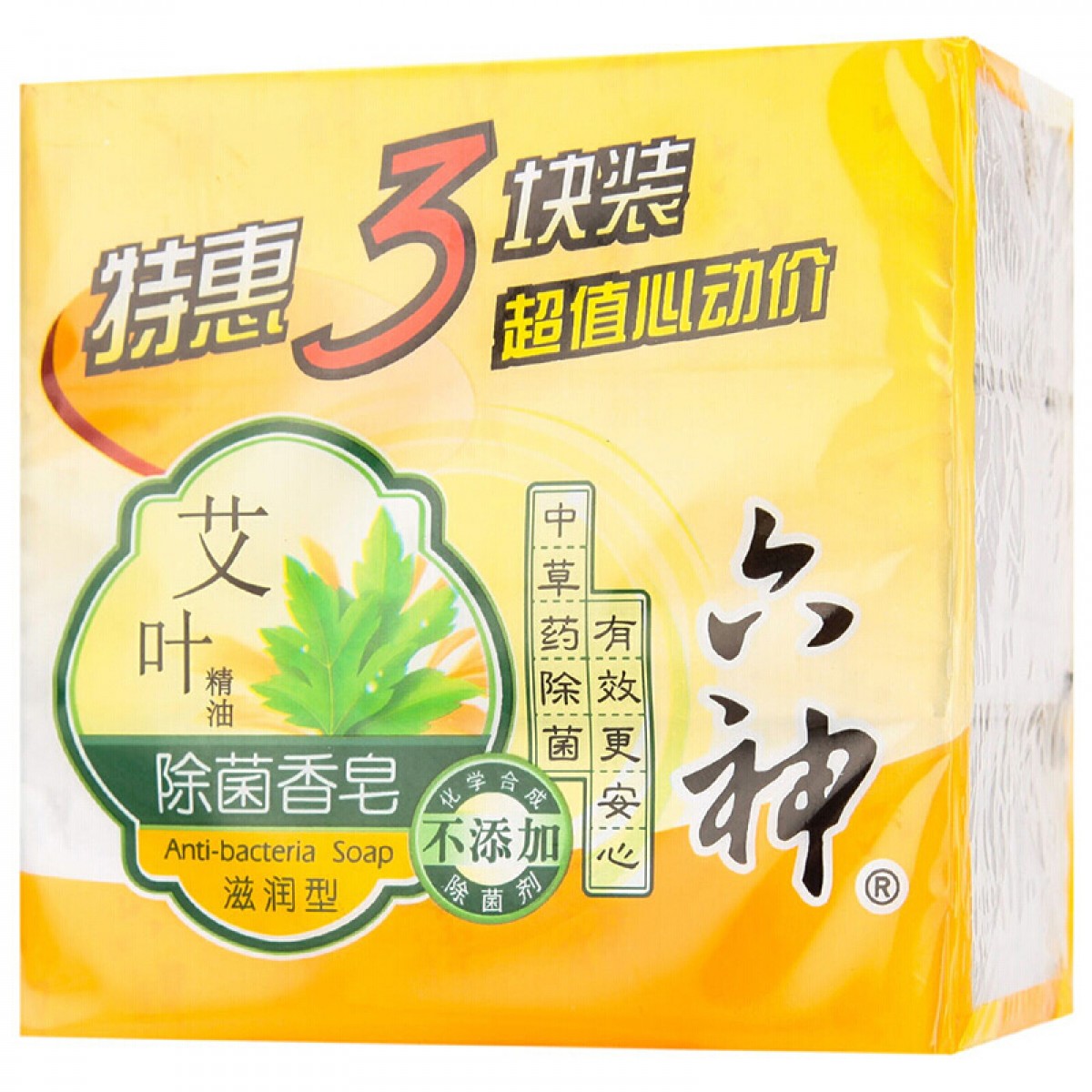 商品名称:六神 艾叶精油除菌香皂【滋润型】125g*3块特惠装洗手