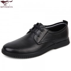 七匹狼 男鞋新款头层牛皮系带商务休闲软底软面真皮男士皮鞋子