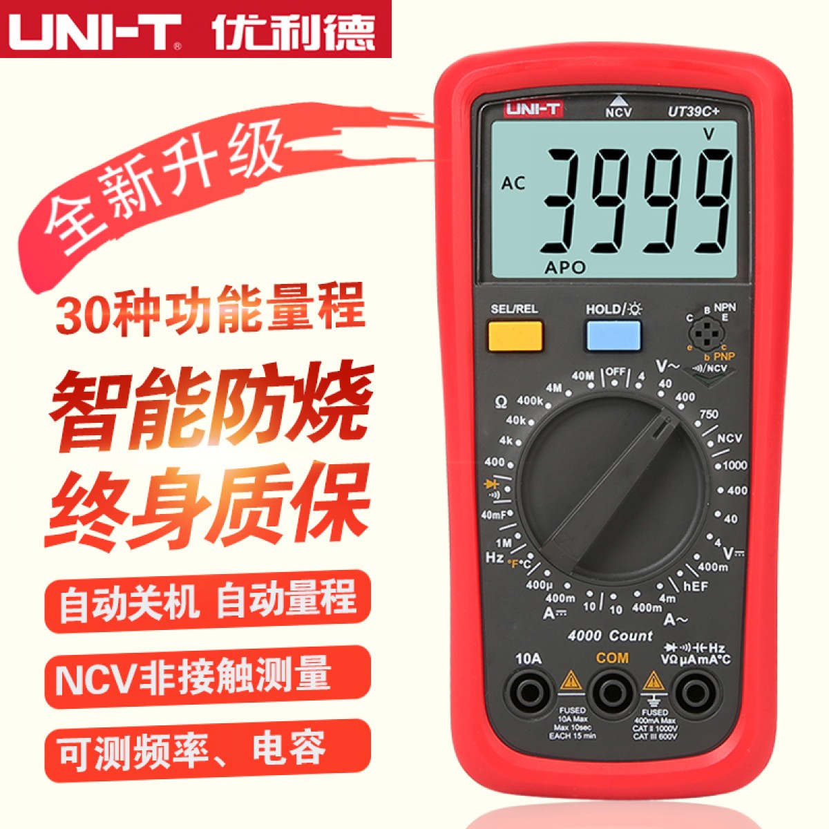 优利德 万用表数字高精度全自动电工维修数显万能表防烧高精度 UT39