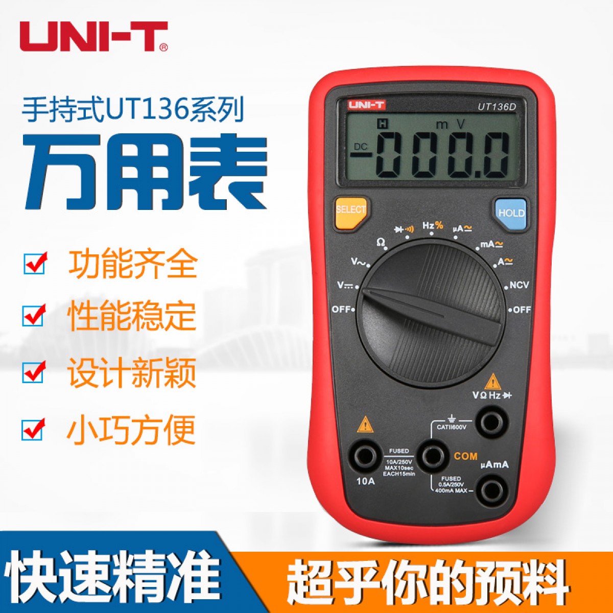 商品名称:优利德 高精度自动量程防烧数显小型电工数字万用表万能表 UT136