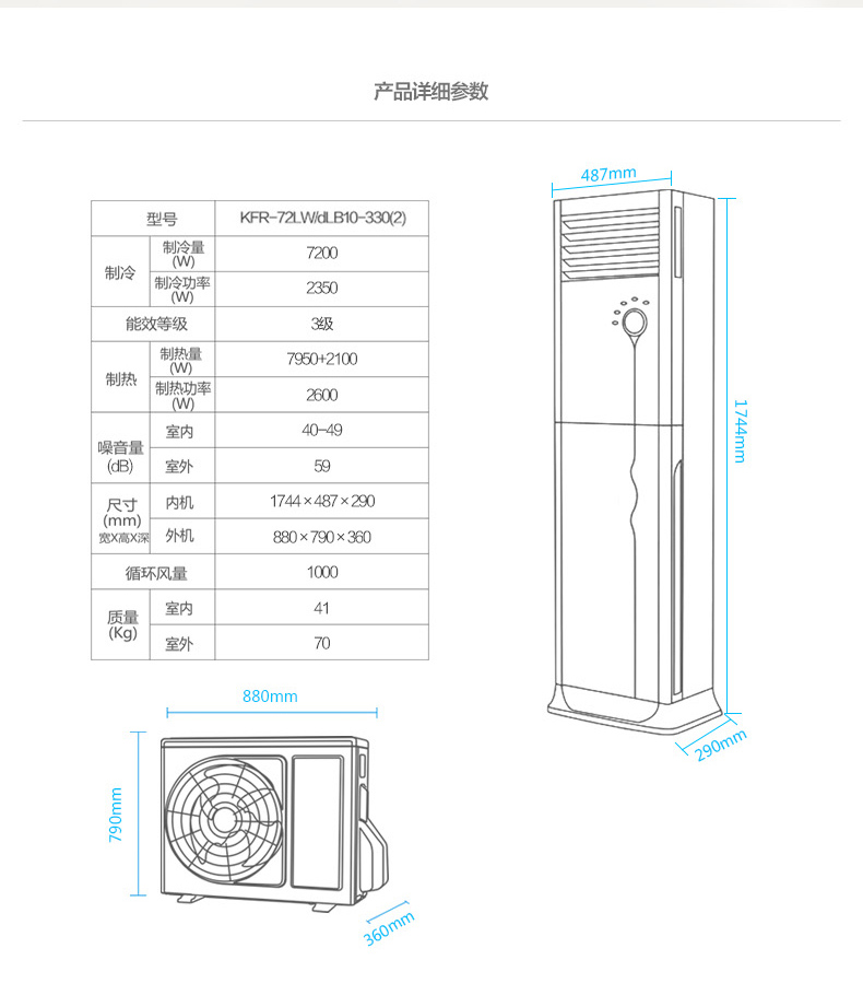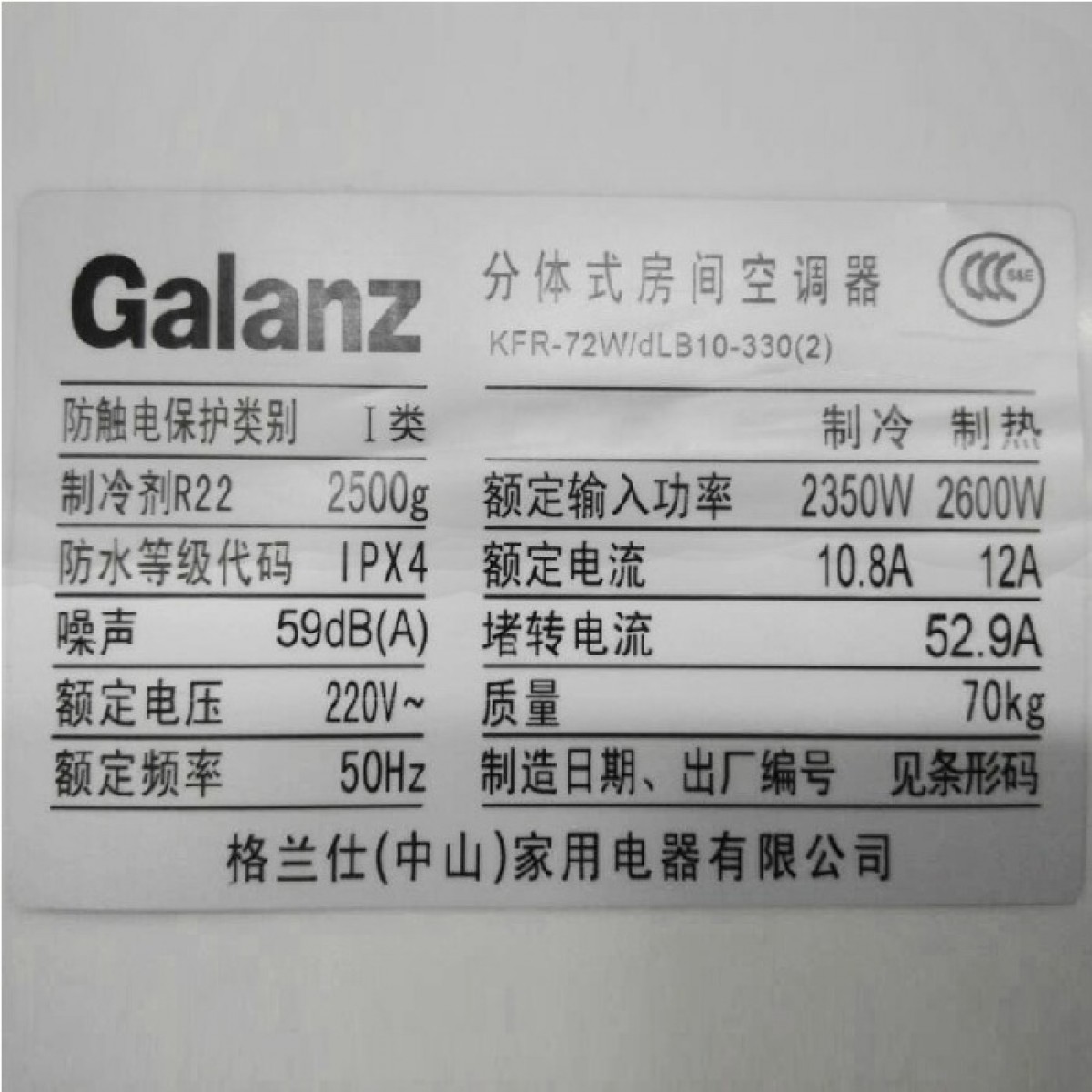 商品名称:格兰仕 3匹冷暖柜机空调 KFR-72LW/DLB10-330(2)