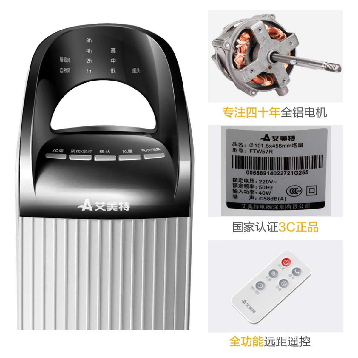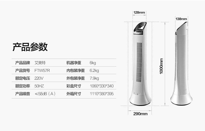 商品名称:艾美特 家用无叶风扇遥控静音 FTW57R