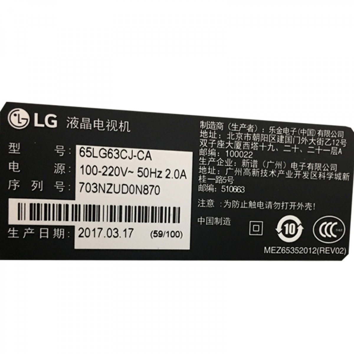 型号:65LG63CJ-CA