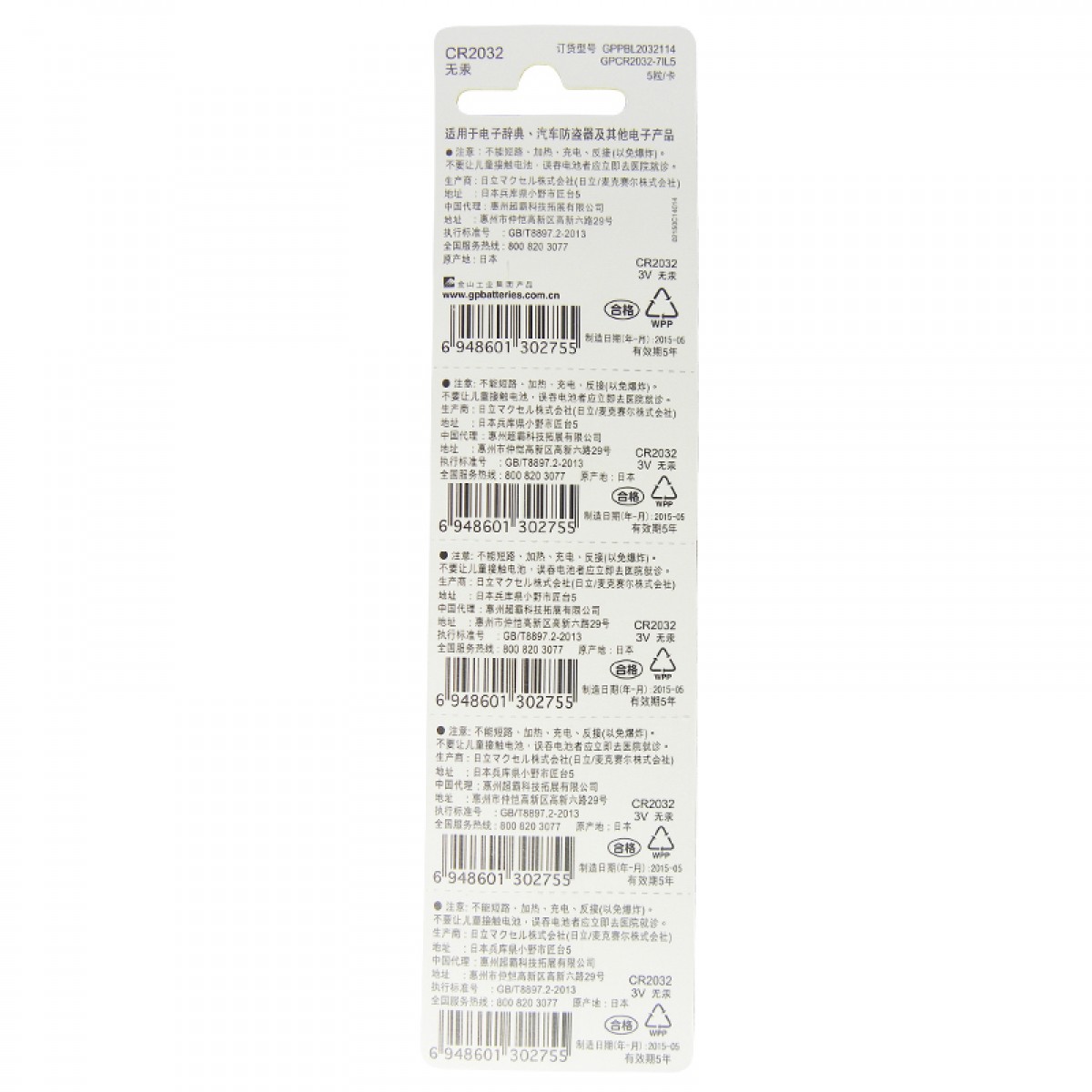 商品名称:GP超霸 纽扣电池3v 5粒 cr2032