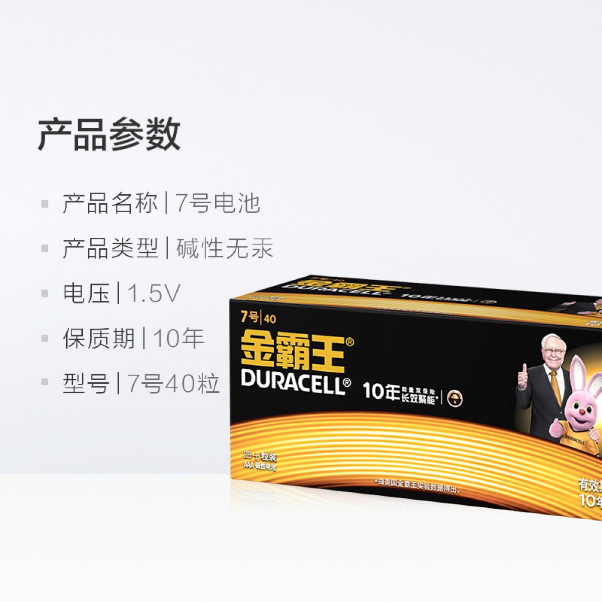 商品名称:金霸王 AAA 7号电池碱性七号电池 40粒装