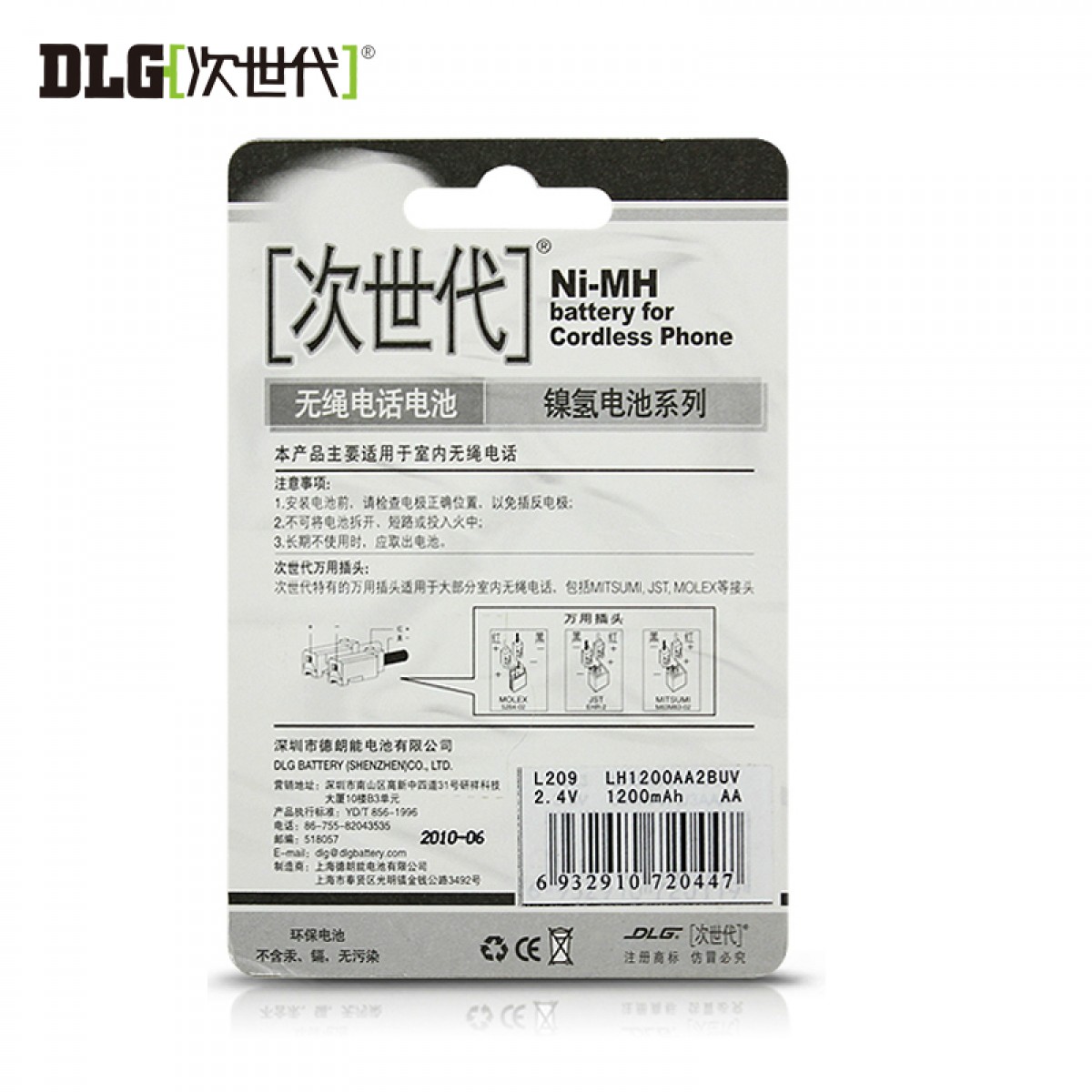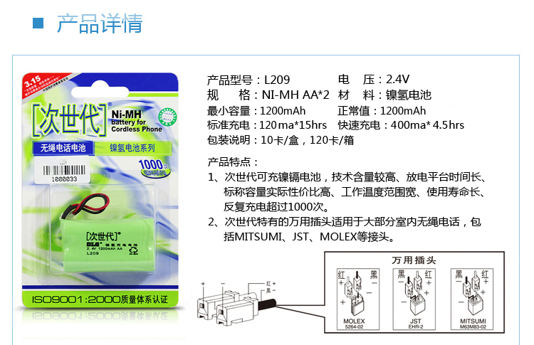 商品名称:次世代 充电电池 1200mAh2.4V L209