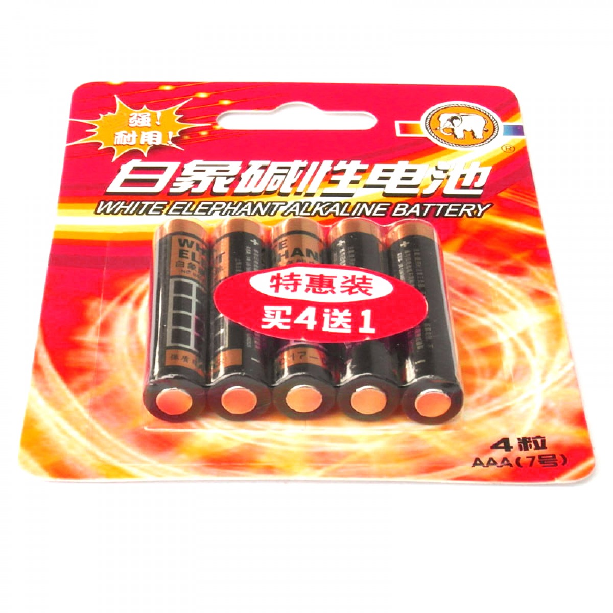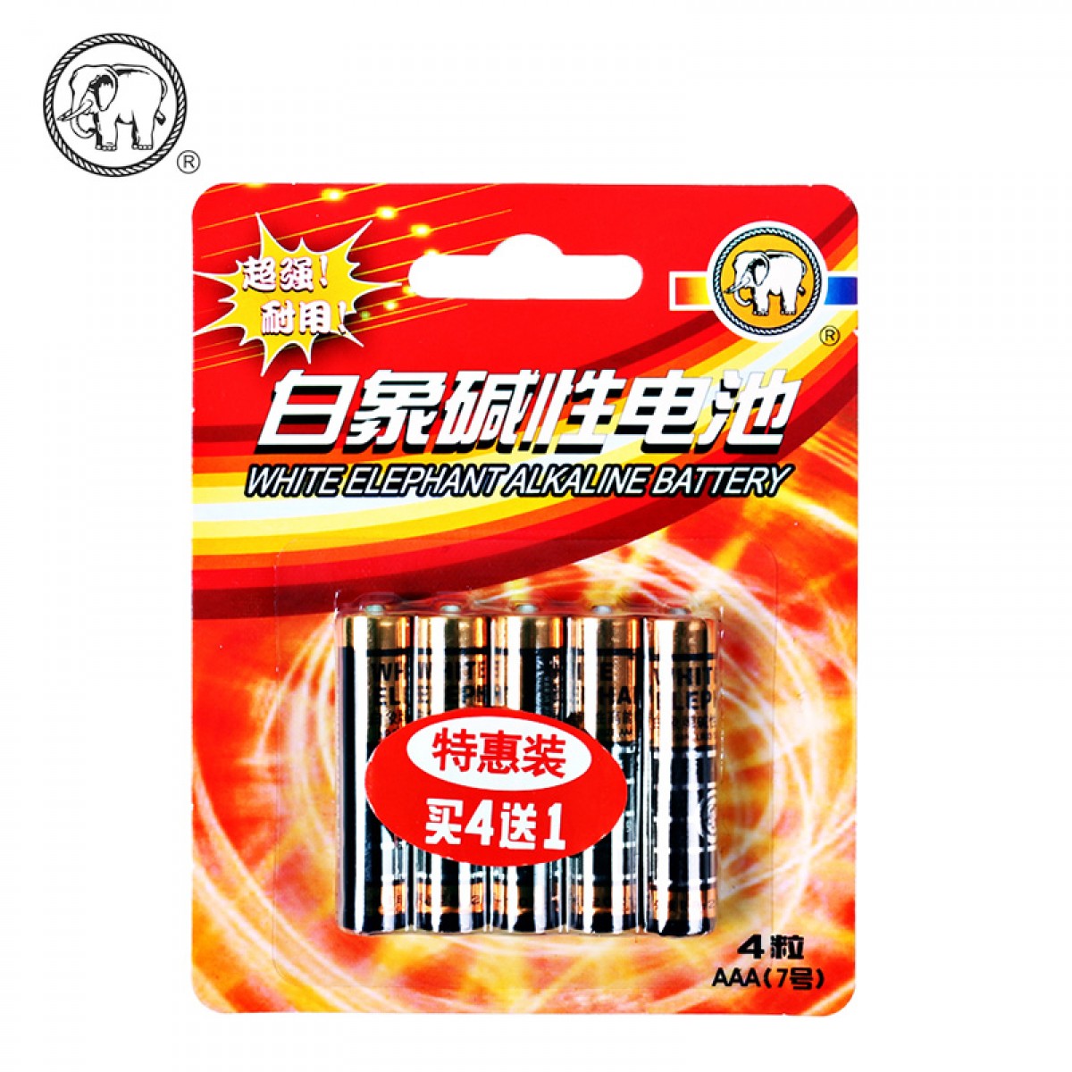 商品名称:白象 碱性电池AAA7号5节 1.5V LR03AAA NO.9403