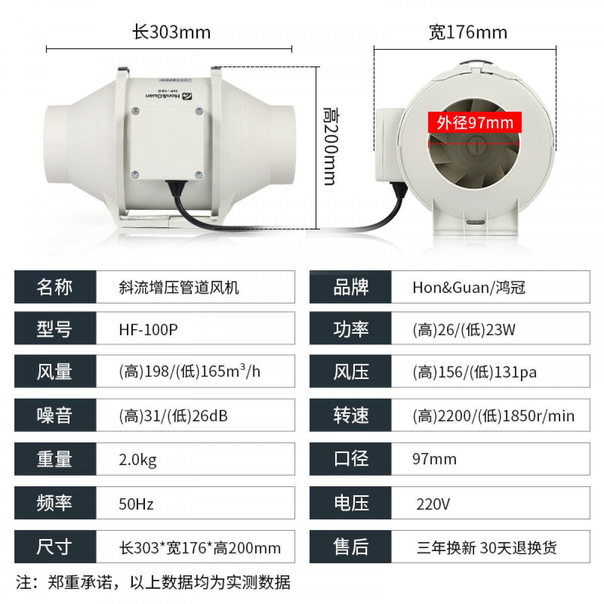 商品名称:鸿冠 圆形管道风机强力抽风机4寸排风机换气扇 hf-100p