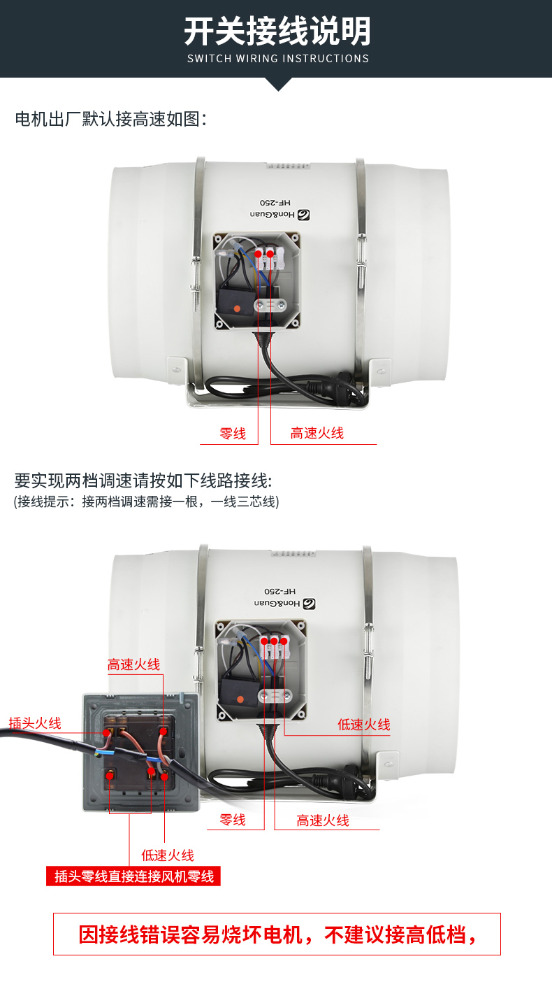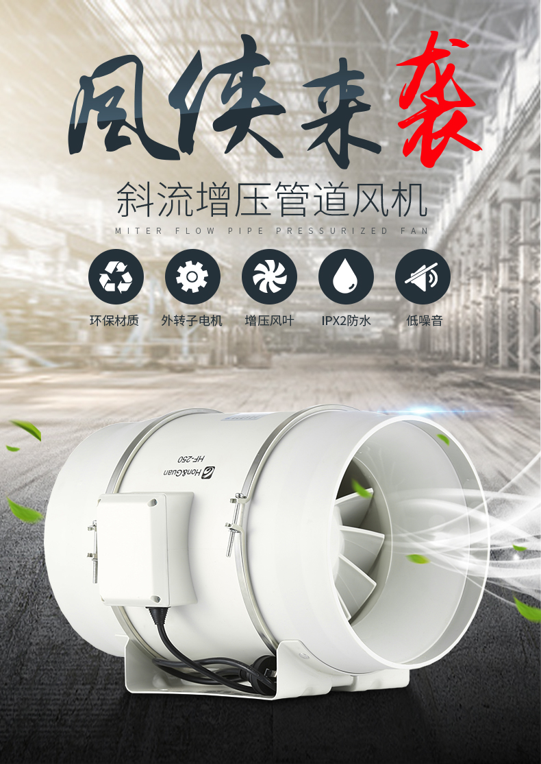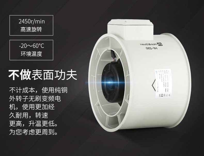商品名称:鸿冠 圆形管道风机10寸强力抽风机 HF-250P
