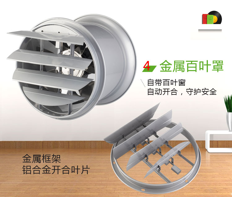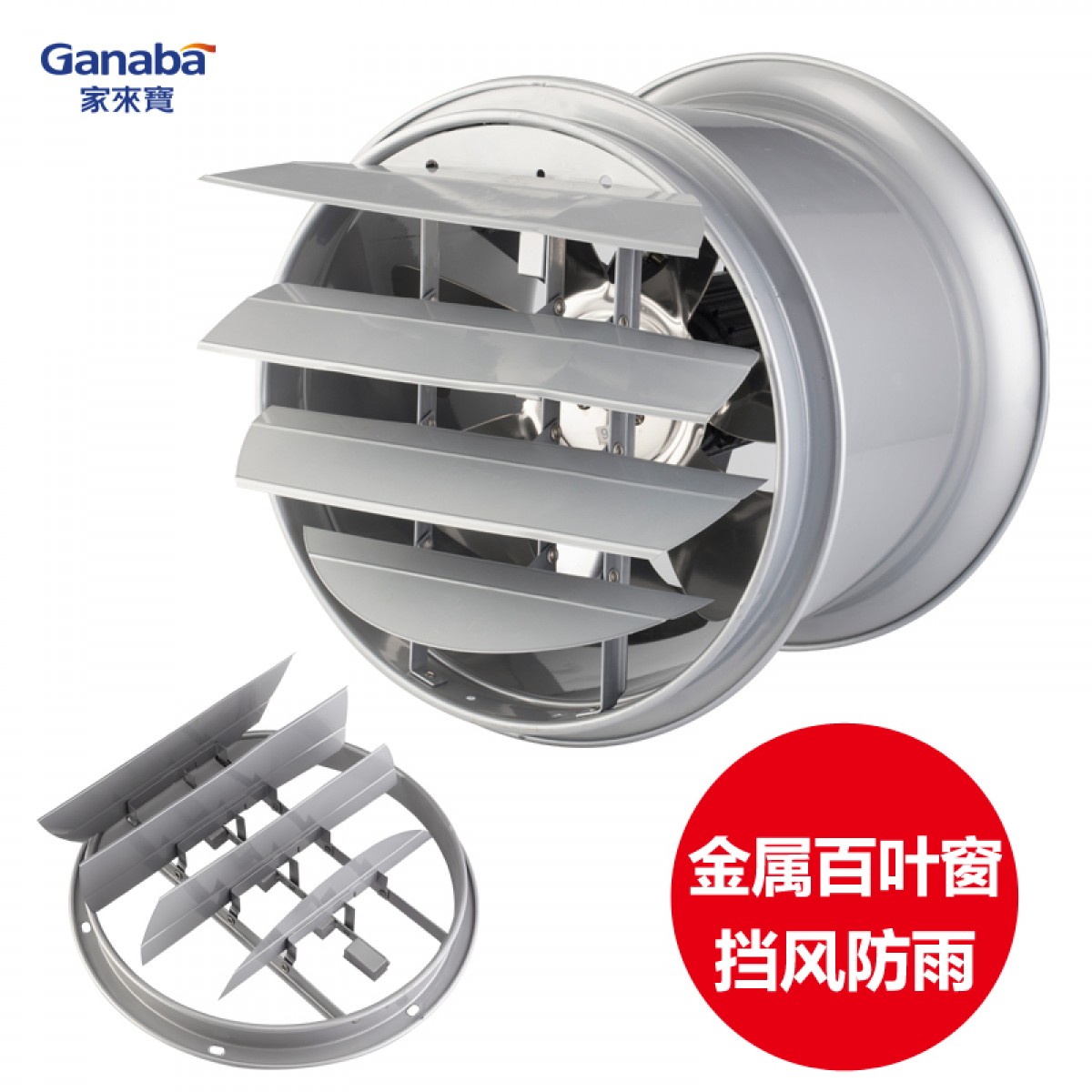 家来宝 排风扇工业圆筒抽风机百叶窗换气扇 14寸强圆带百叶