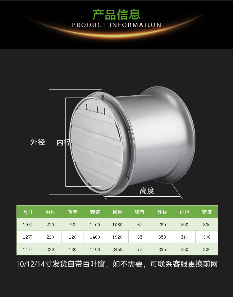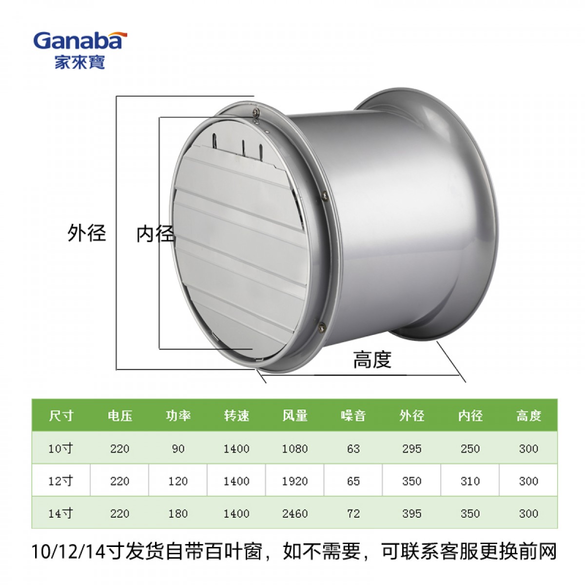 商品名称:家来宝 排风扇工业圆筒抽风机百叶窗换气扇 14寸强圆带百叶