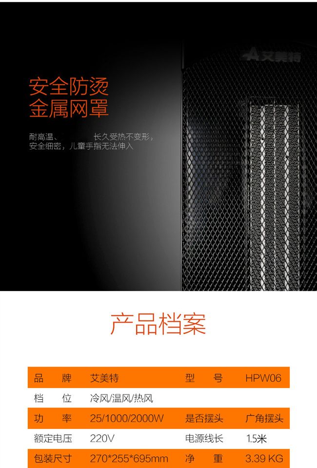 商品名称:艾美特 取暖器家用/电暖器暖风机暖气机 HPW06