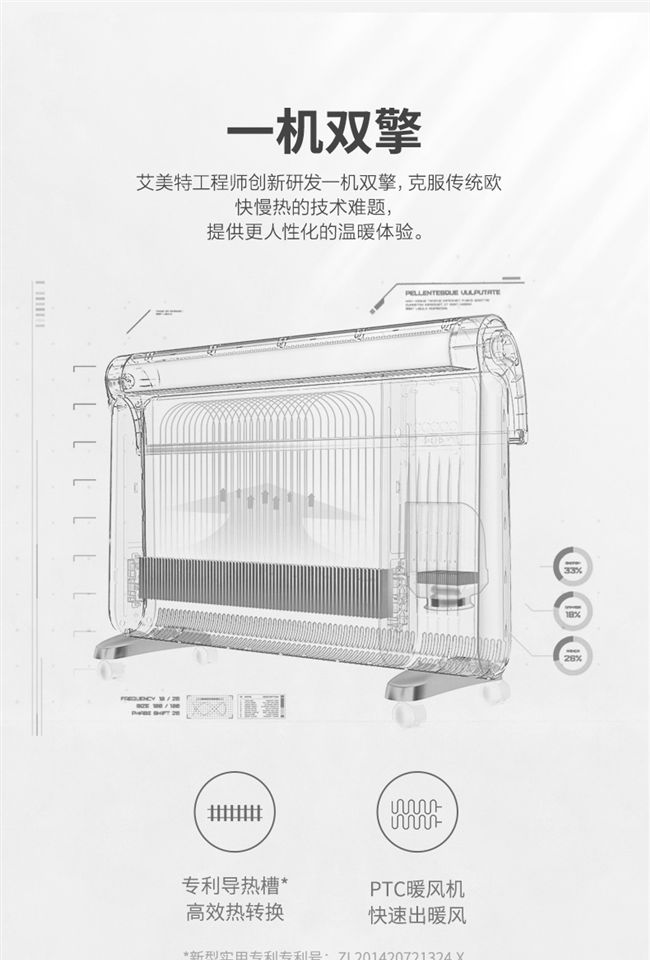 艾美特 取暖器家用电暖器欧式快热炉暖气电热遥控快热 HC30156R