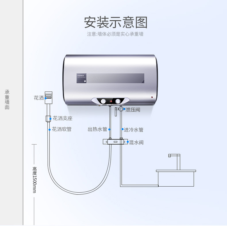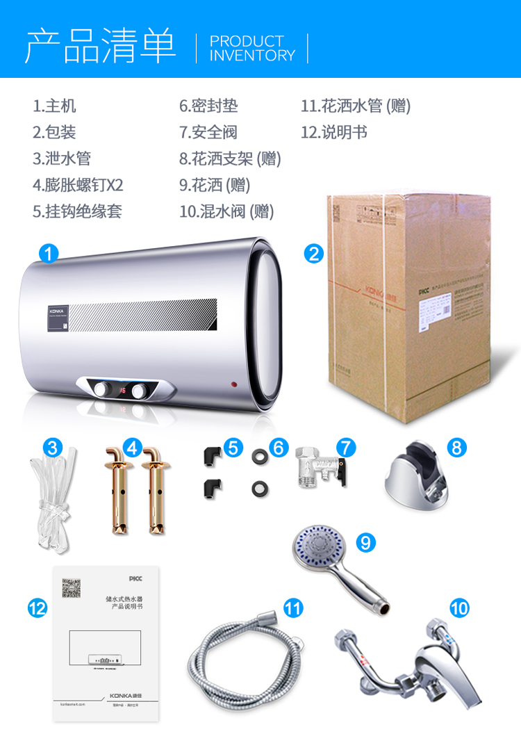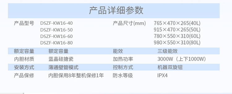 商品名称:康佳 扁桶储水式家用电热水器壁挂超薄60升 DSZF-KW16-60
