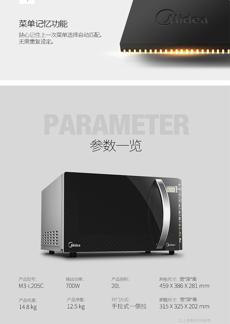 商品名称:美的 微波炉蒸烤箱一体家用智能平板 M3-L205C