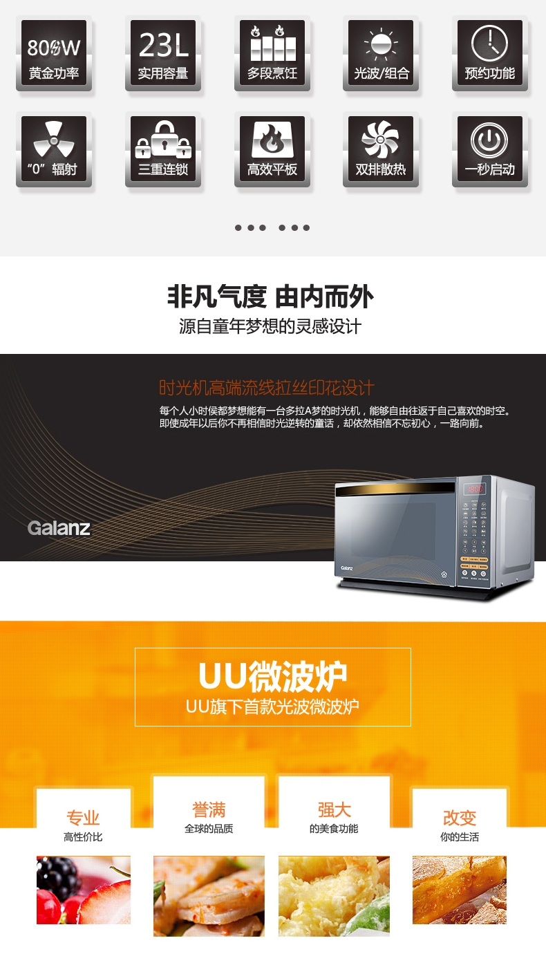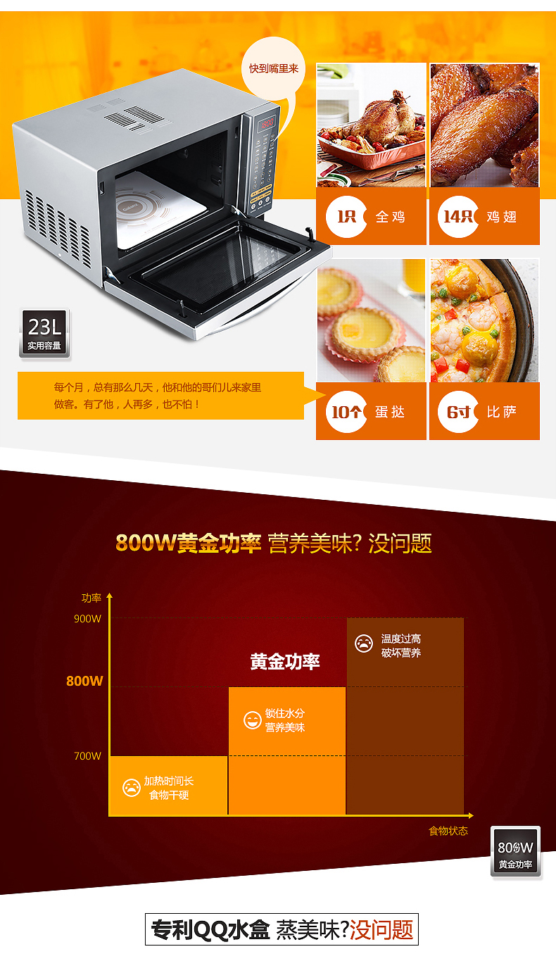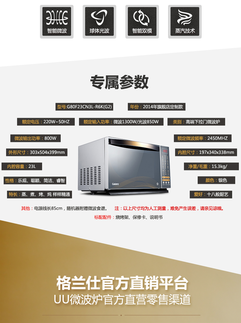 商品名称:格兰仕 光波微波炉家用 烤箱一体 G80F23CN3XL-R6K(G2)